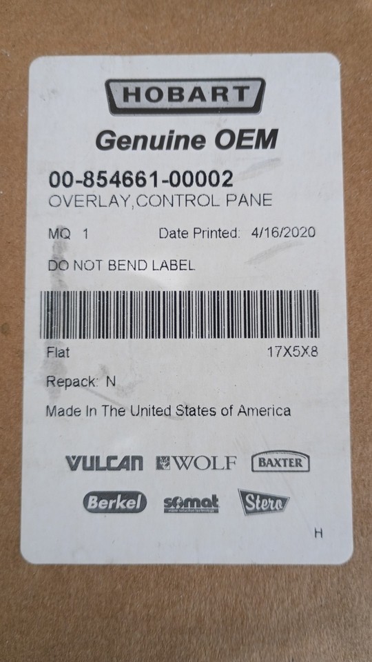 Vulcan Hart Overlay,Control Panel Auto 00-854661-00002