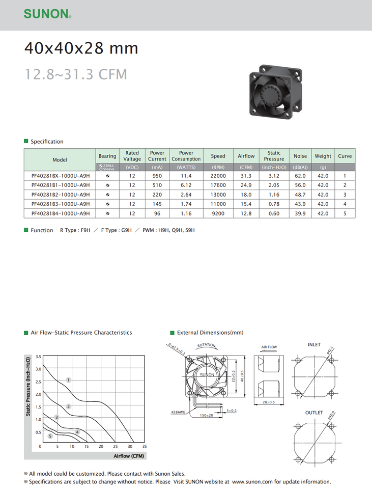PF40281BX-D088-S99 Sunon 40mm X 28 Mm Fan and similar items