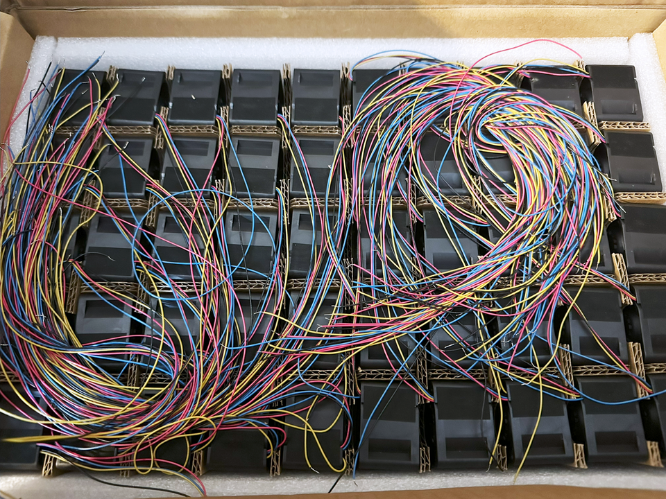 4-wire, #28 AWG: Red(+), Black(?), Yellow(FG), Blue(PWM)