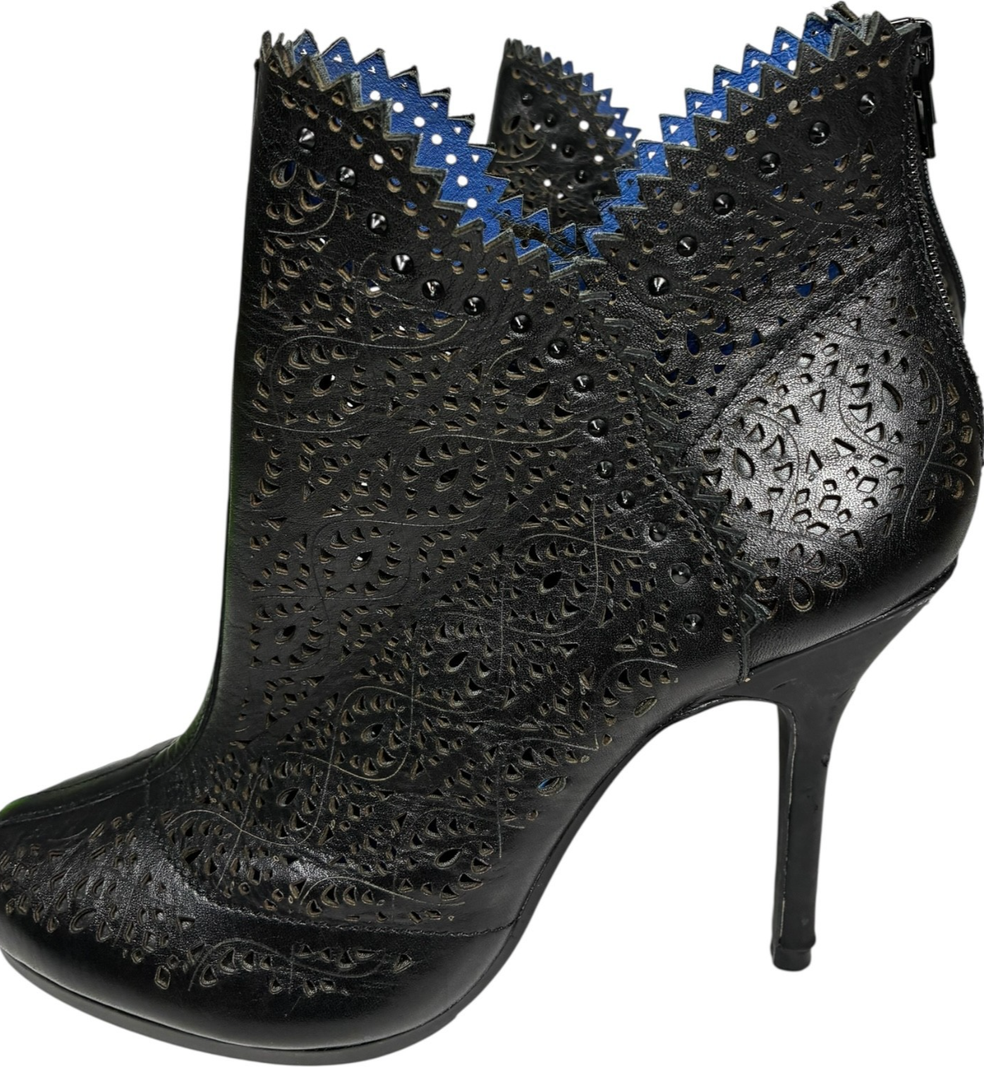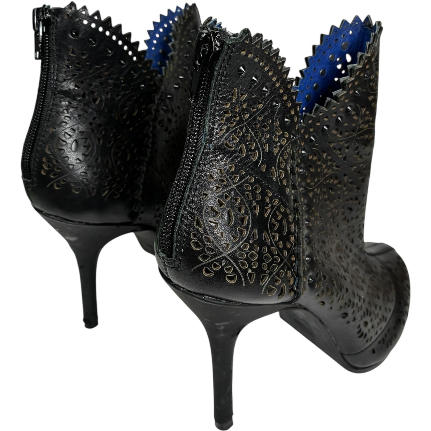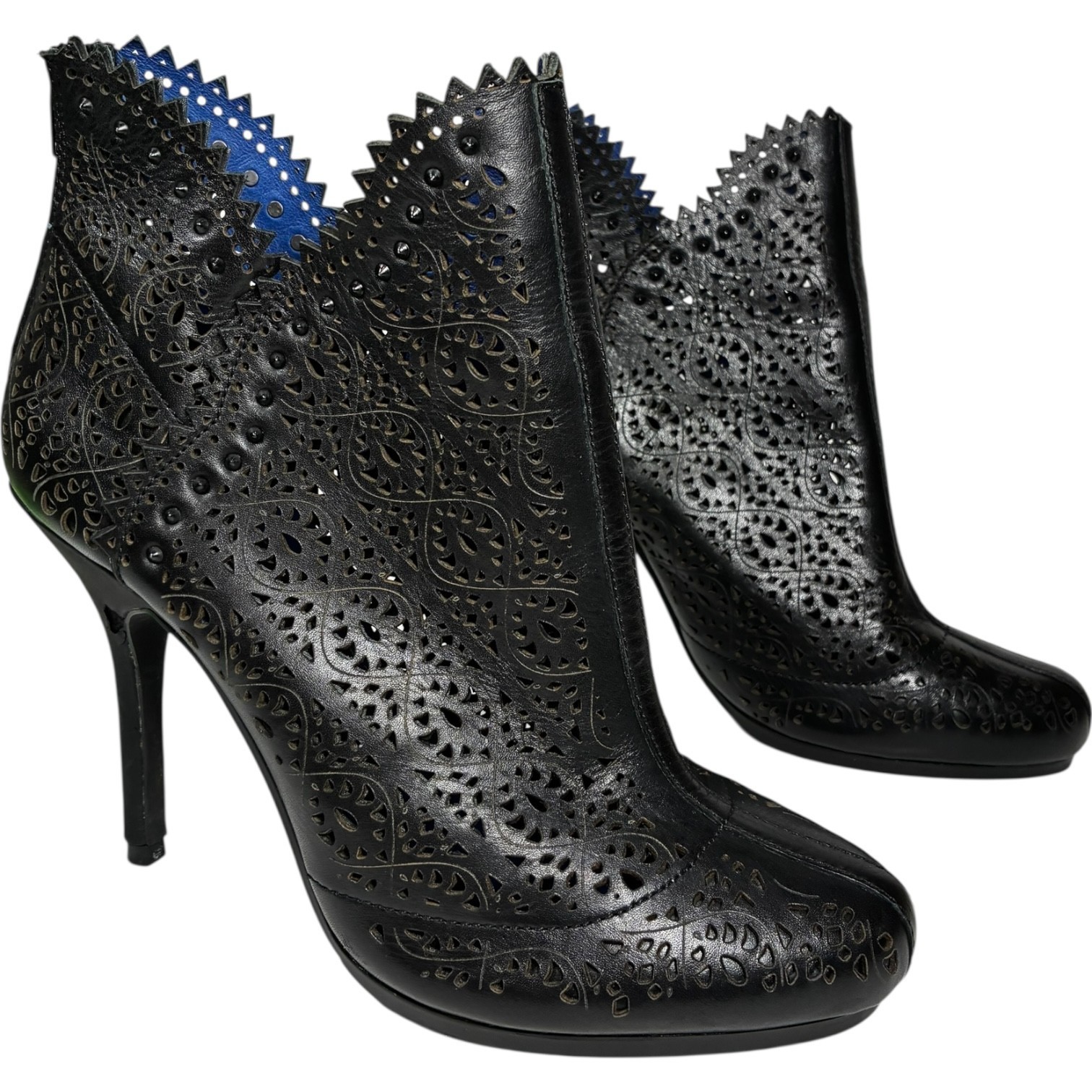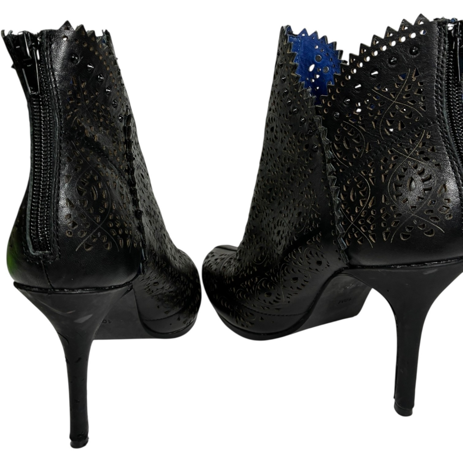 Juicy Couture Karina Black Laser Cut Slip-on 4" heels Ankle Booties Women's 10M