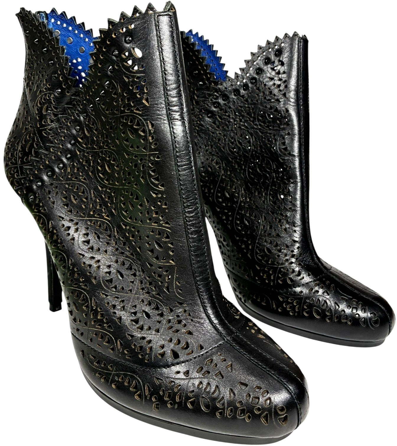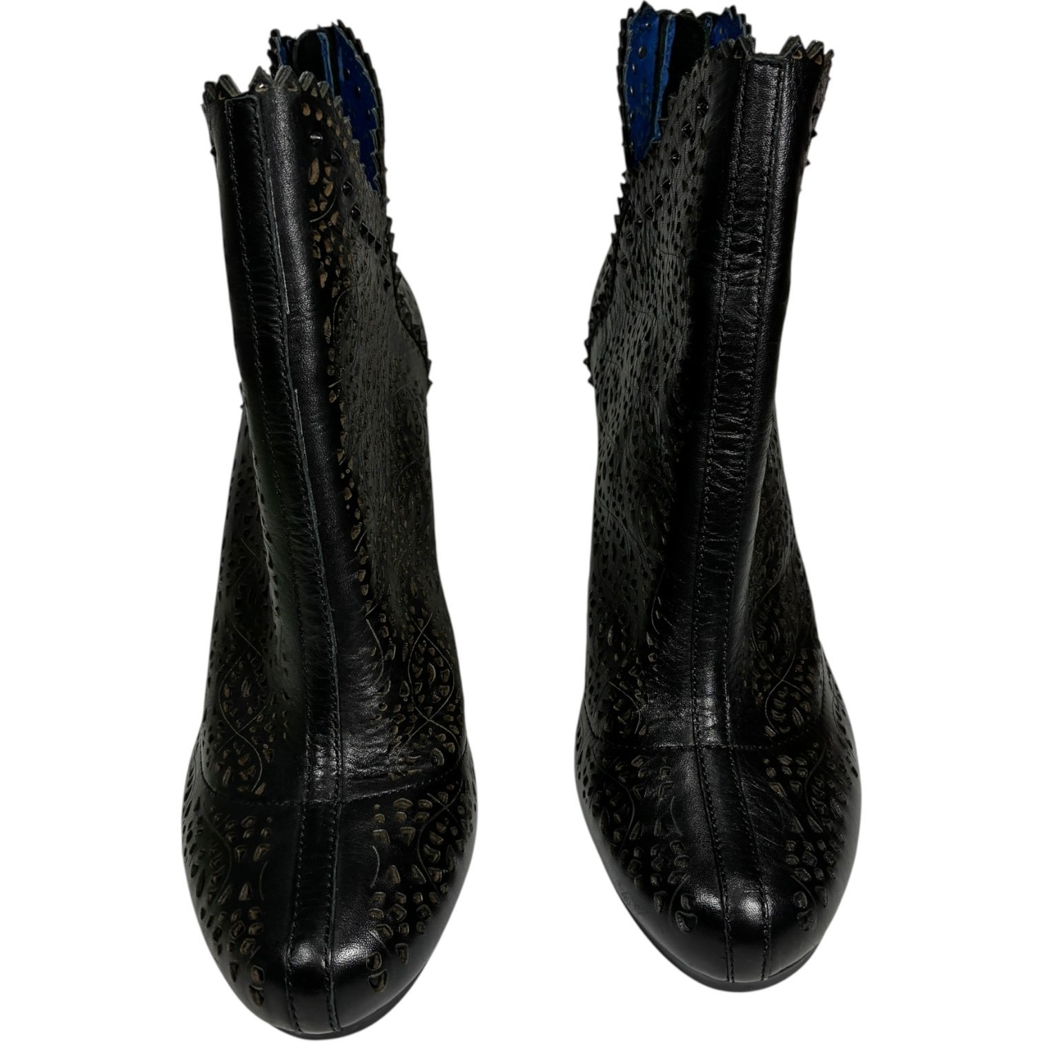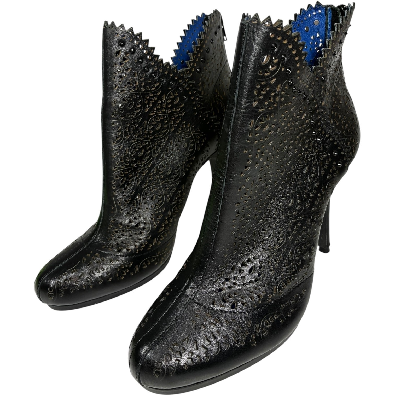 Juicy Couture Karina Black Laser Cut Slip-on 4" heels Ankle Booties Women's 10M