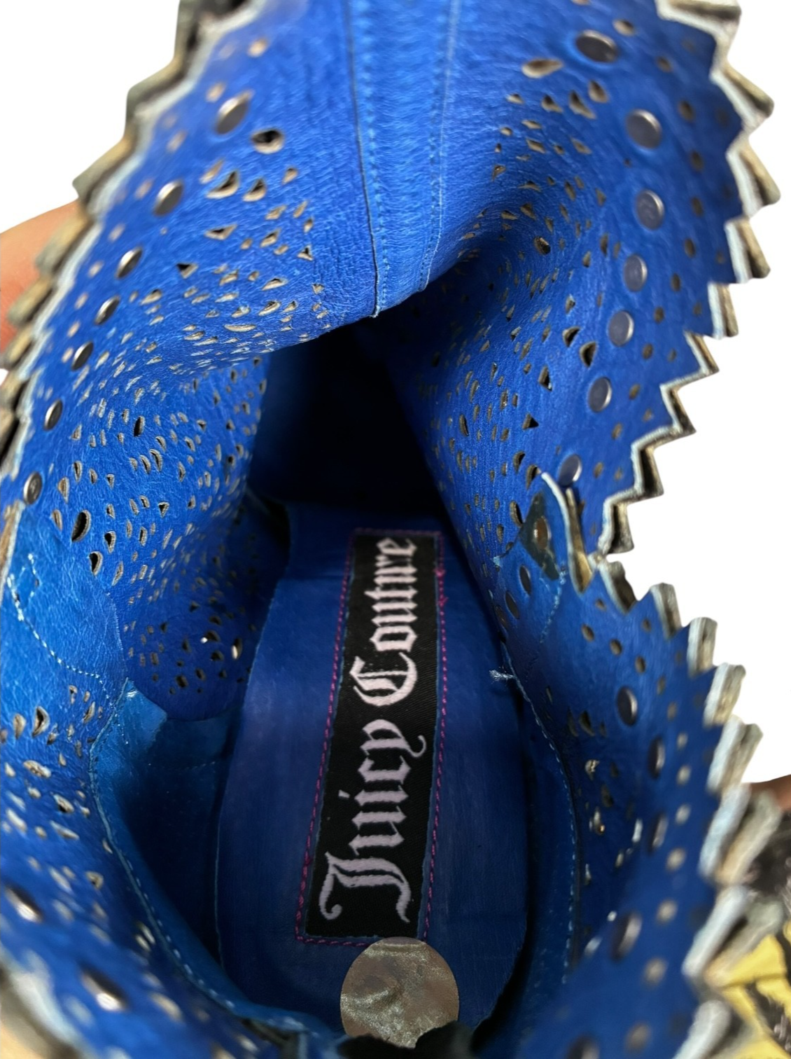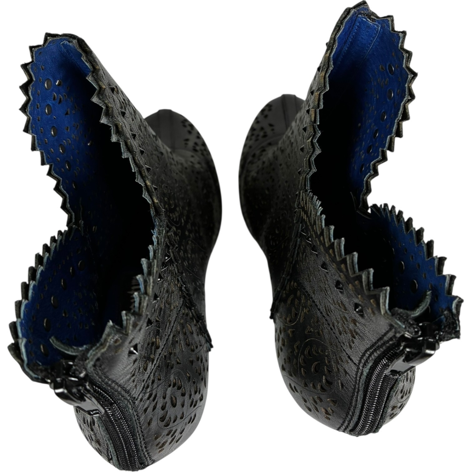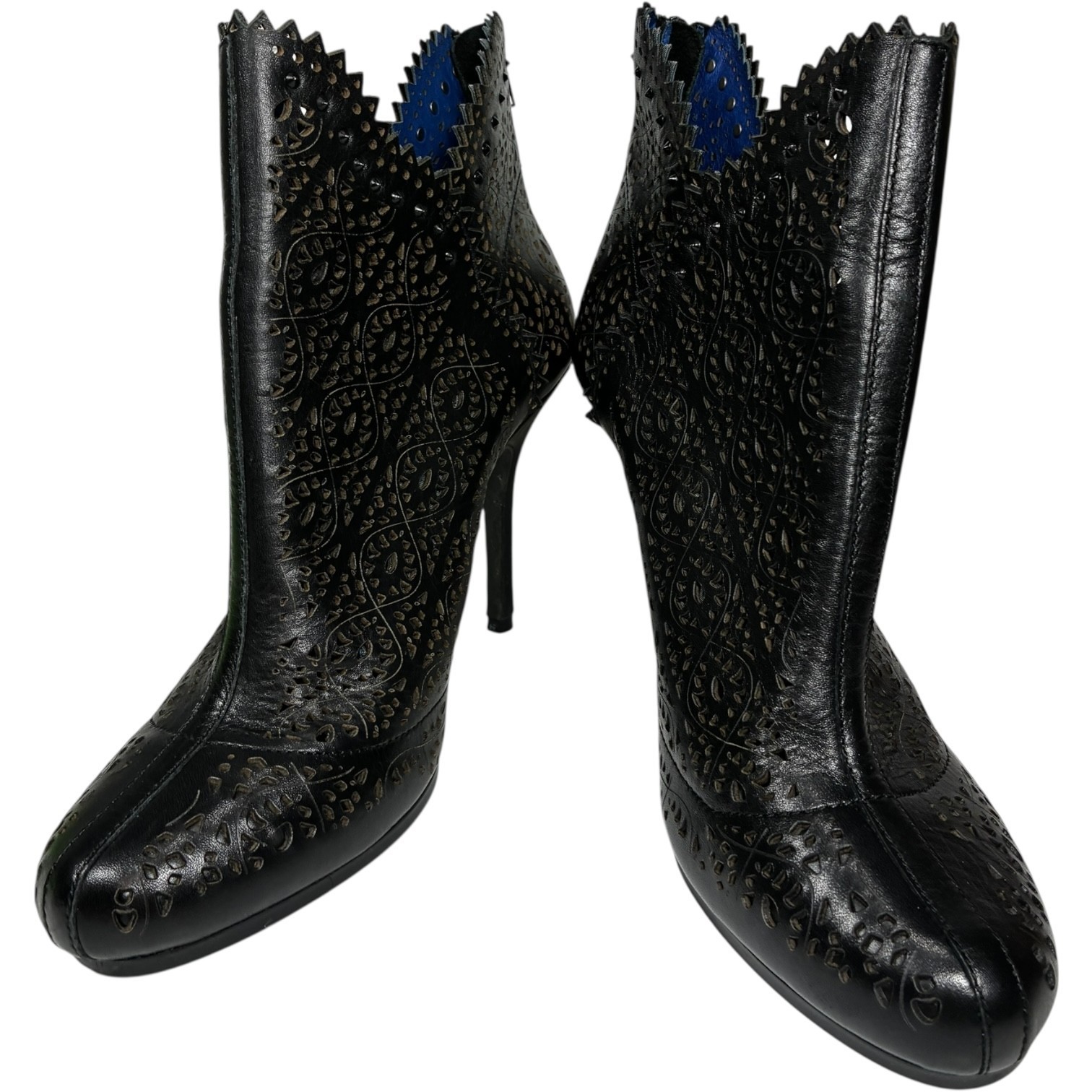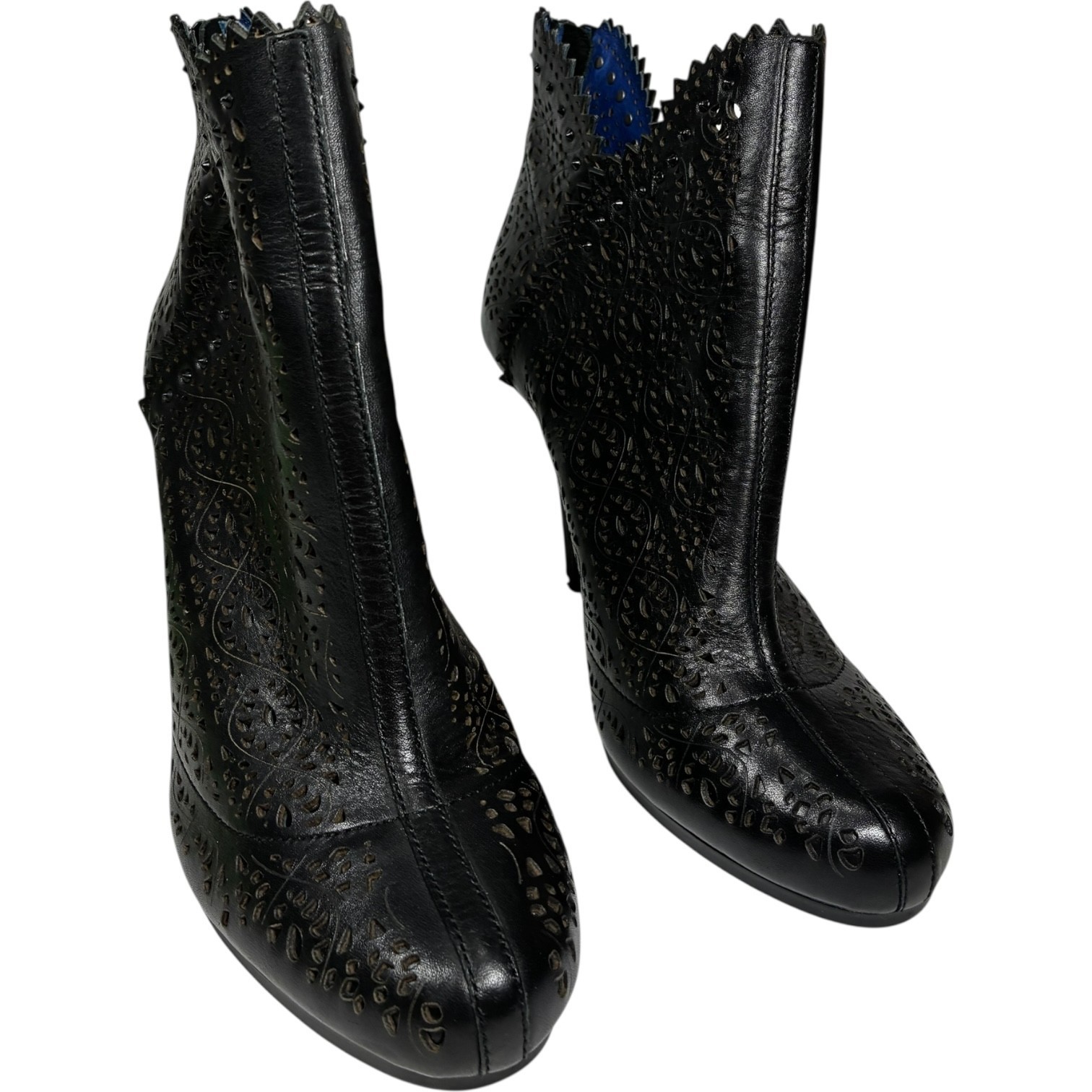 Juicy Couture Karina Black Laser Cut Slip-on 4" heels Ankle Booties Women's 10M
