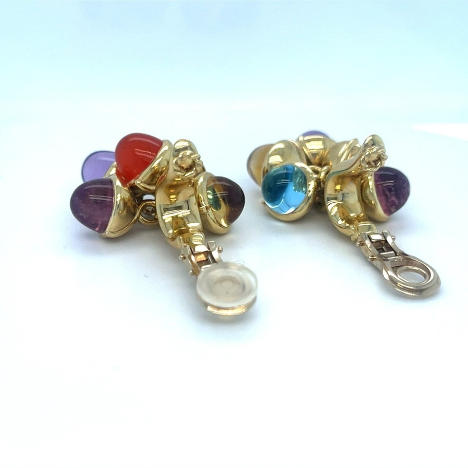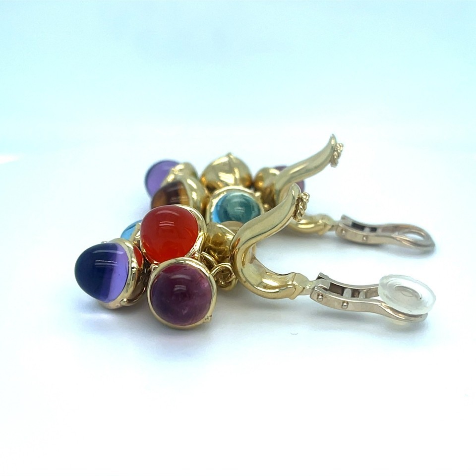 18k Yellow Gold Multi-Gemstone Cabochon Acorn Cluster Drop Clip-On Earrings