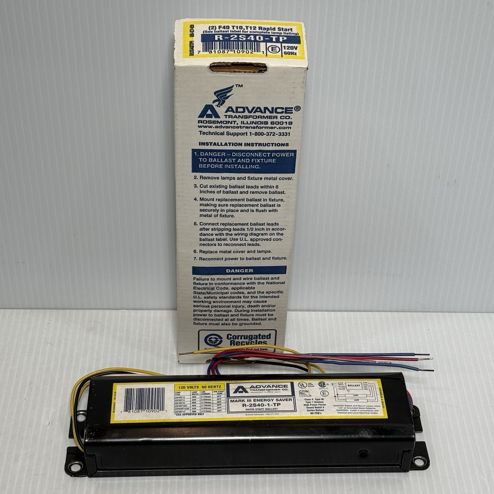 Advance R-2S40-TP Rapid Start Ballast 2-F40 T10 T12- NEW