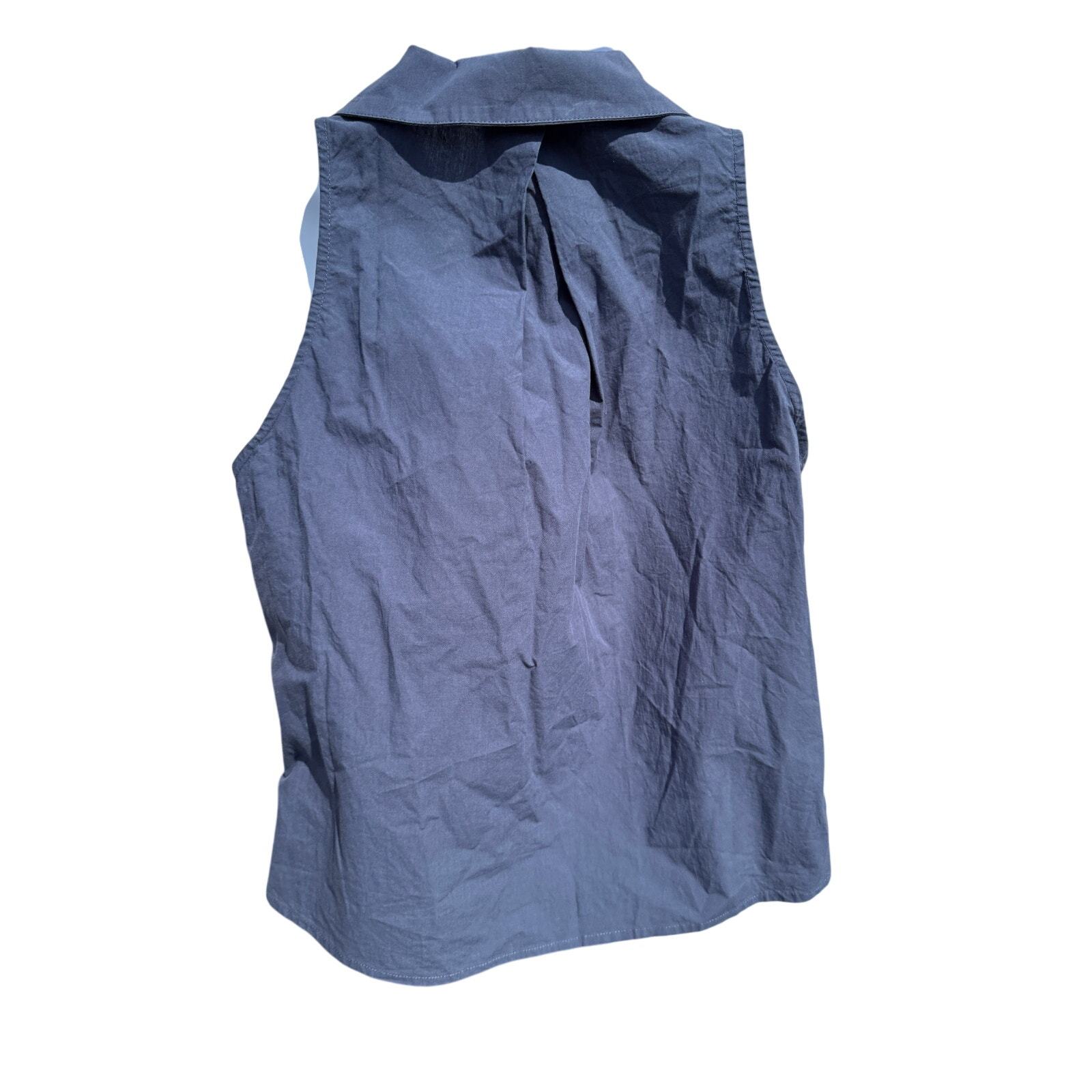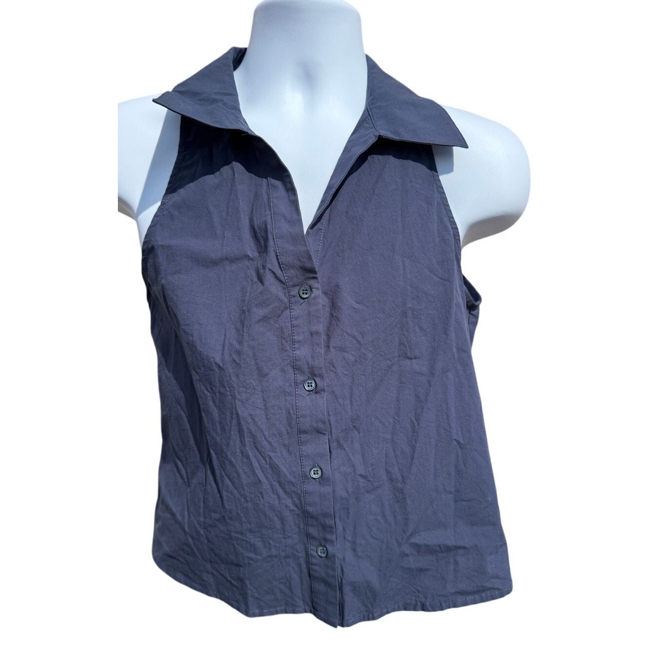Sundays Womens Cotton Collar Sleeveless Button Front Shirt Navy Blue Size M