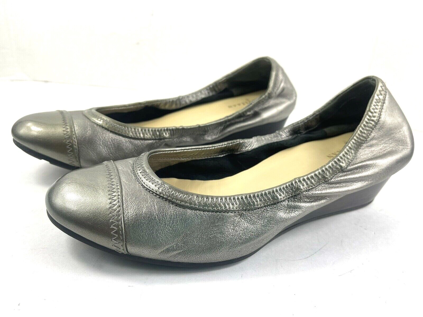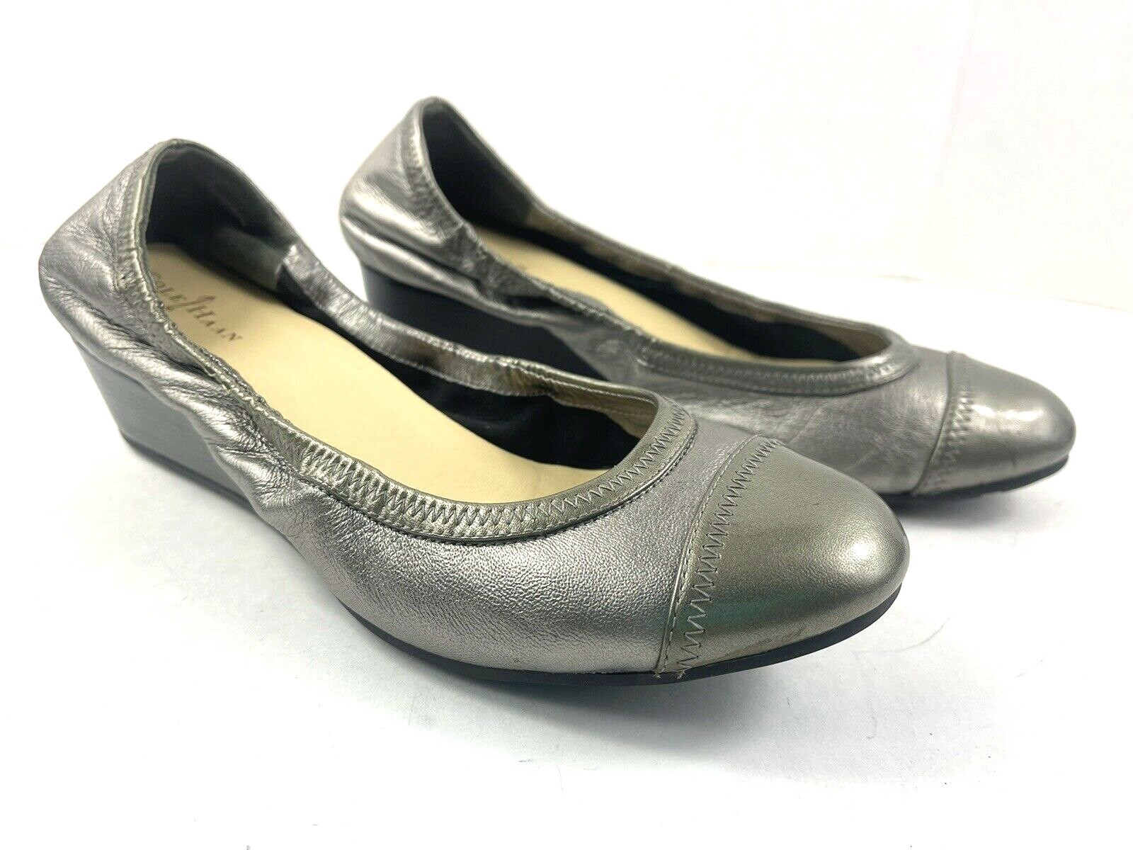 Cole Haan Kitten Heels Women 8.5 B NikeAir Milly Shoes Pewter Grey Wedge Cap Toe