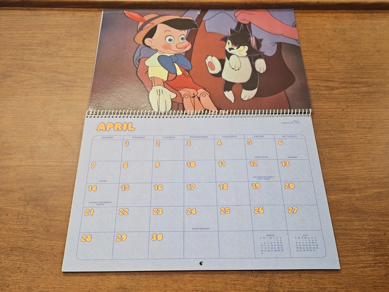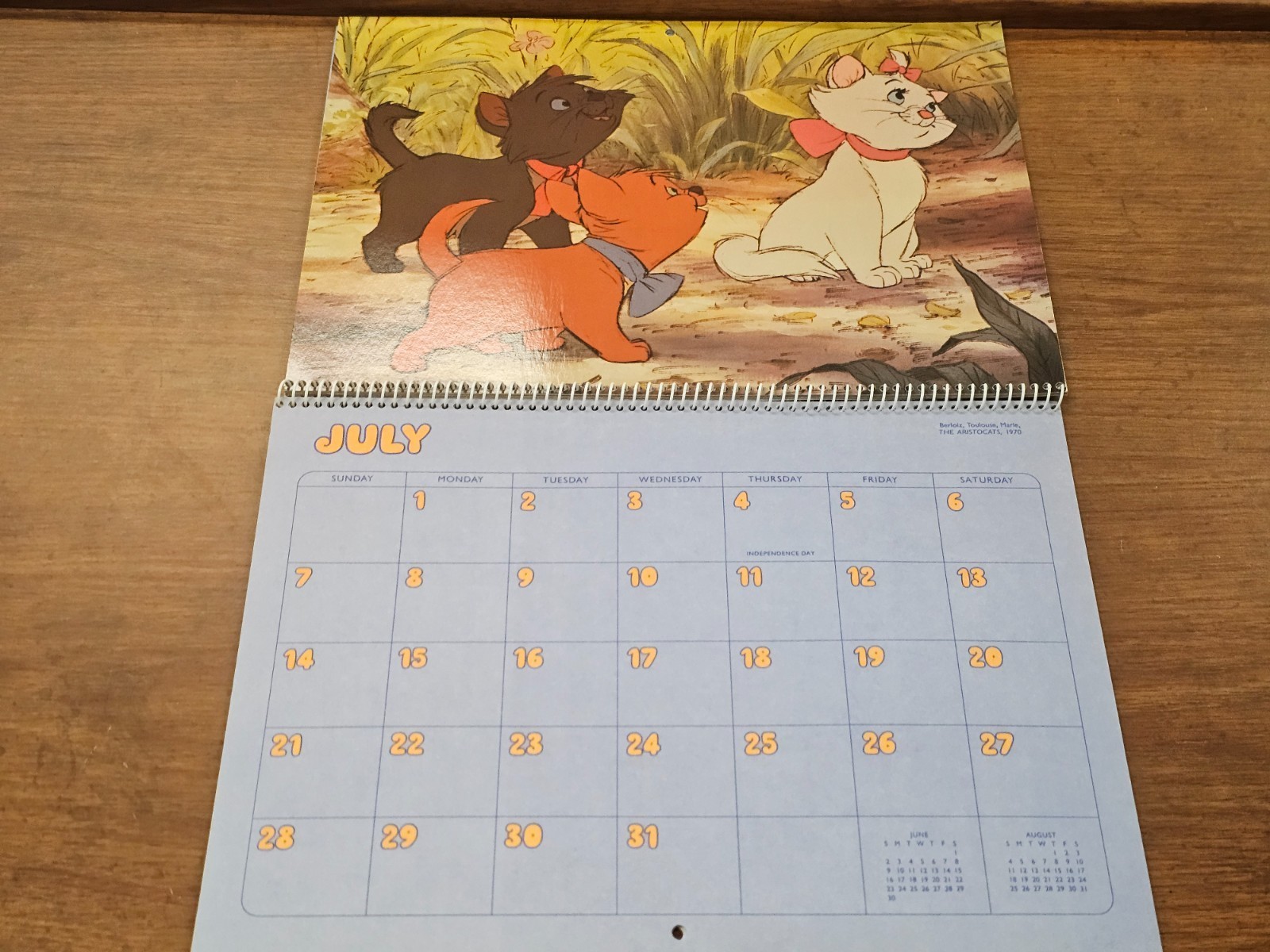 Disney Cats 1985 Calendar Alice in Wonderland Pinocchio The Rescuers Cinderella