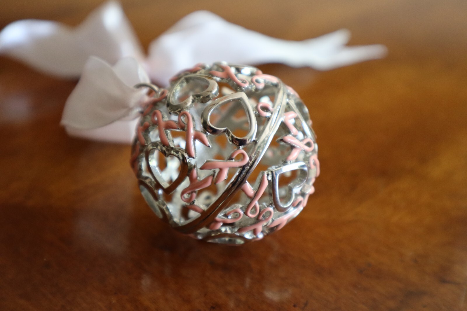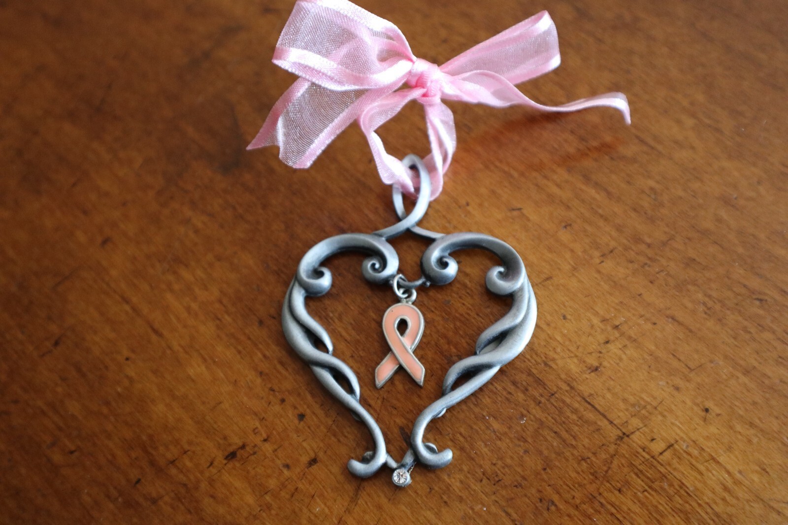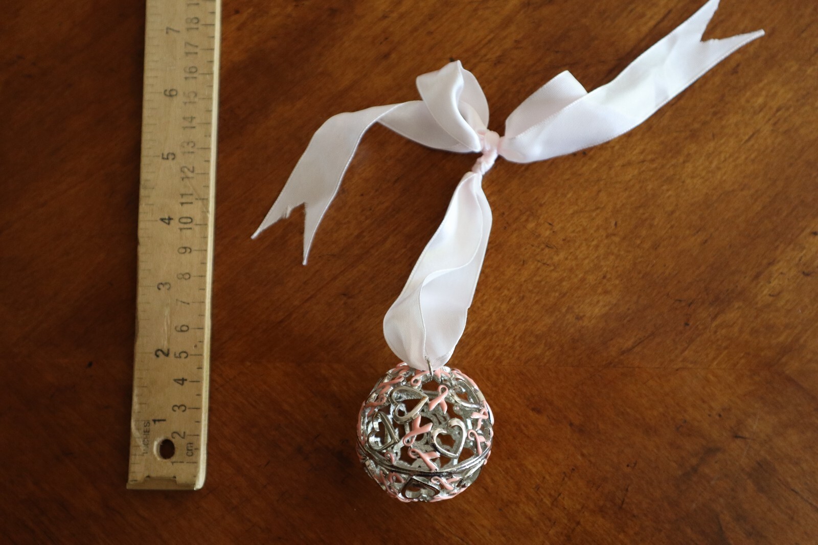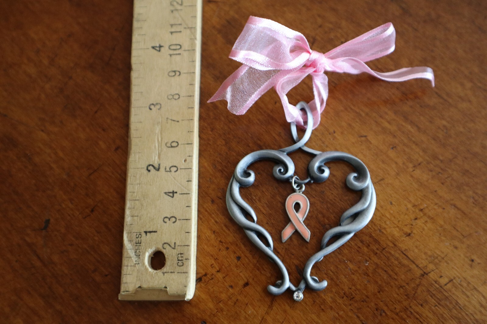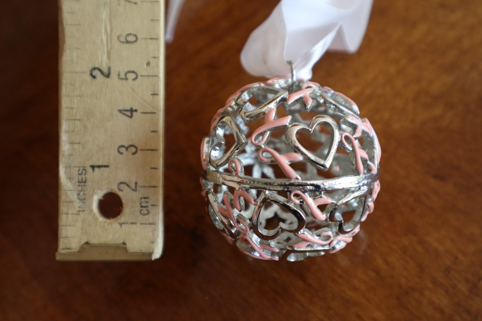 Pewter Pink Heart Ribbon & Sphere Breast Cancer Awarenesss Hanging Ornament Lot