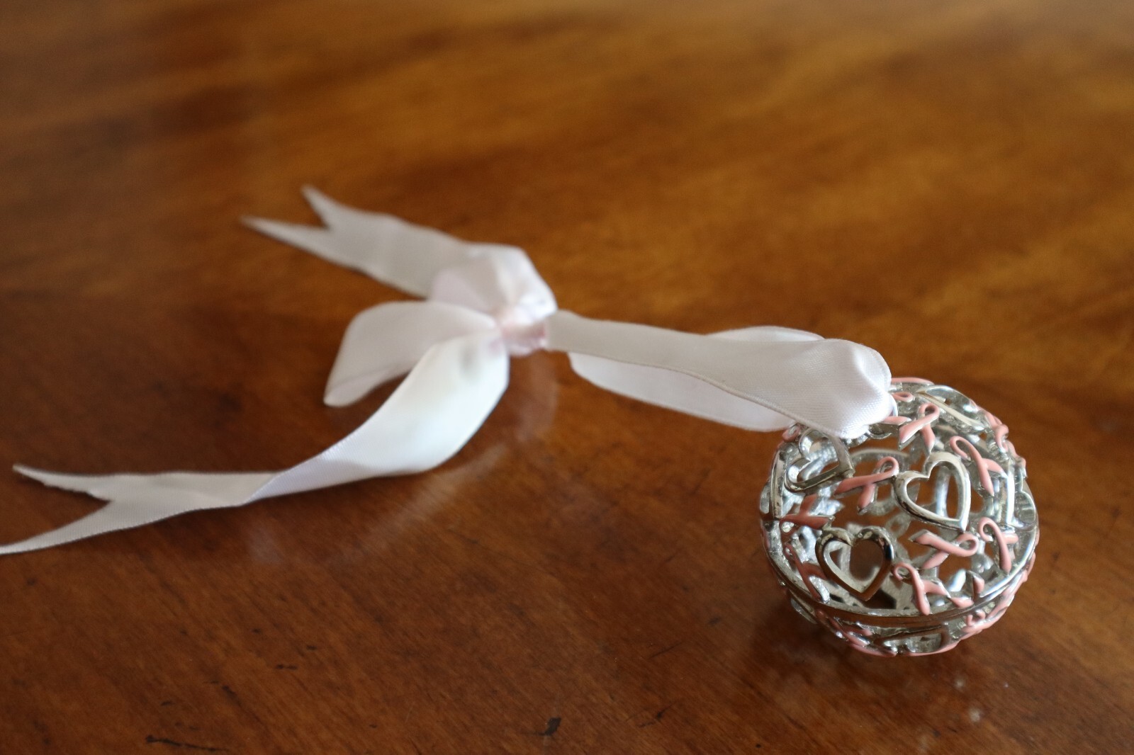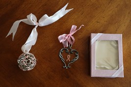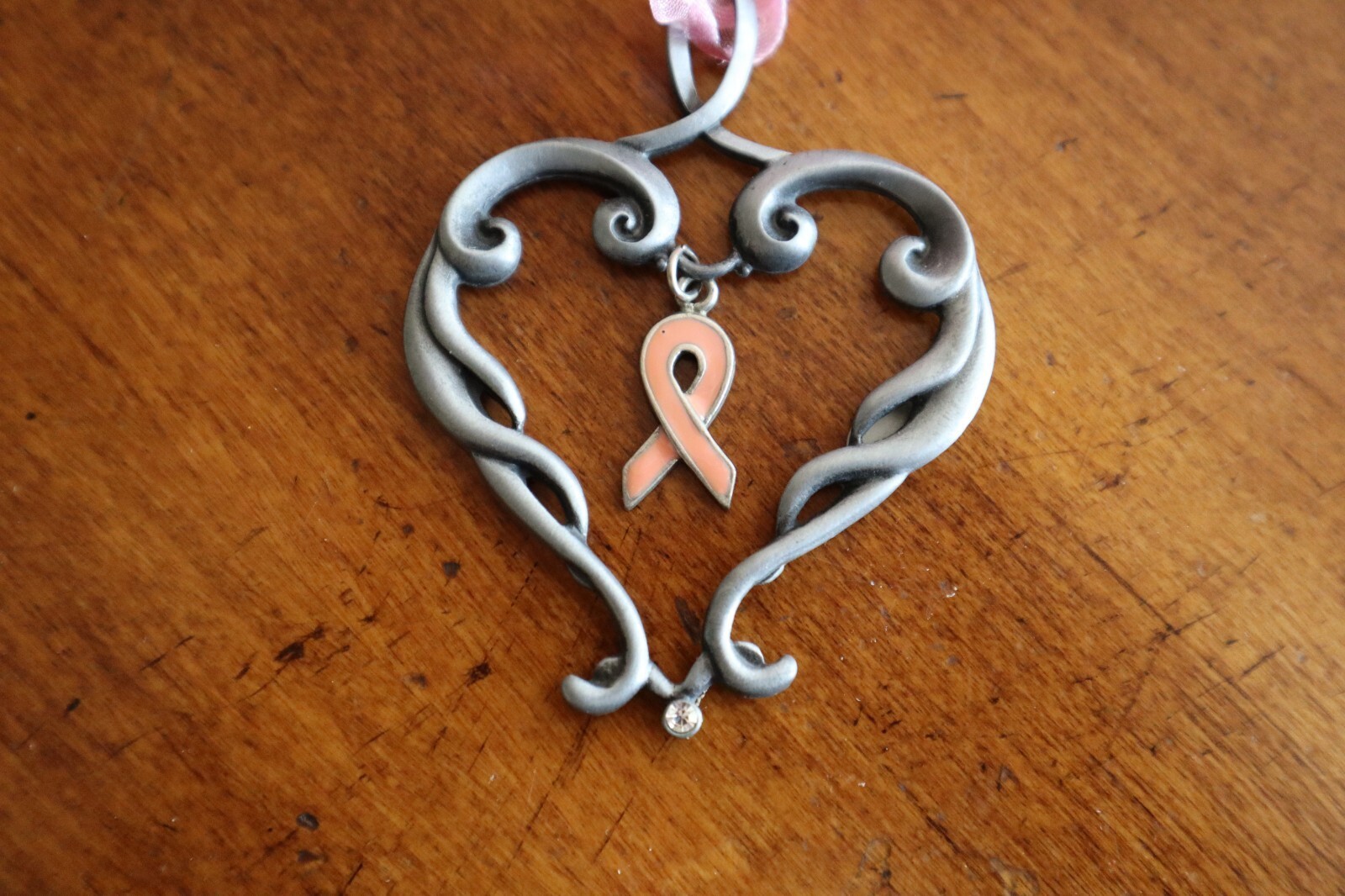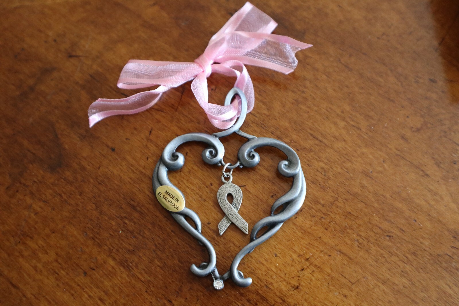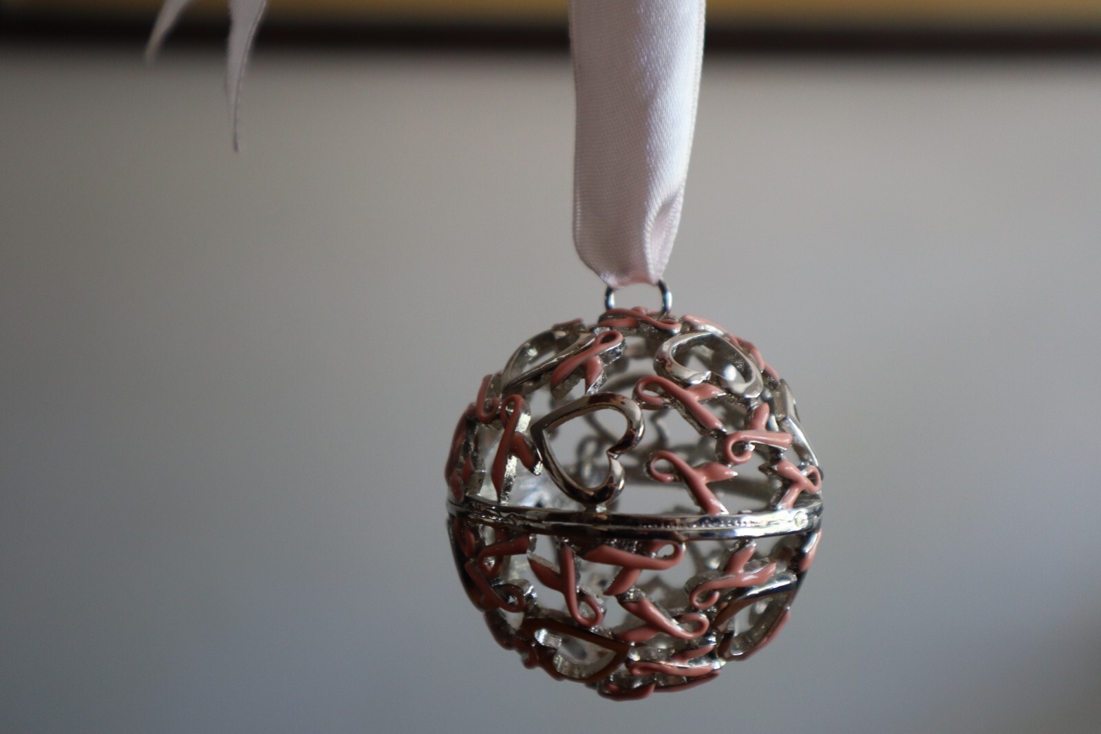 Pewter Pink Heart Ribbon & Sphere Breast Cancer Awarenesss Hanging Ornament Lot