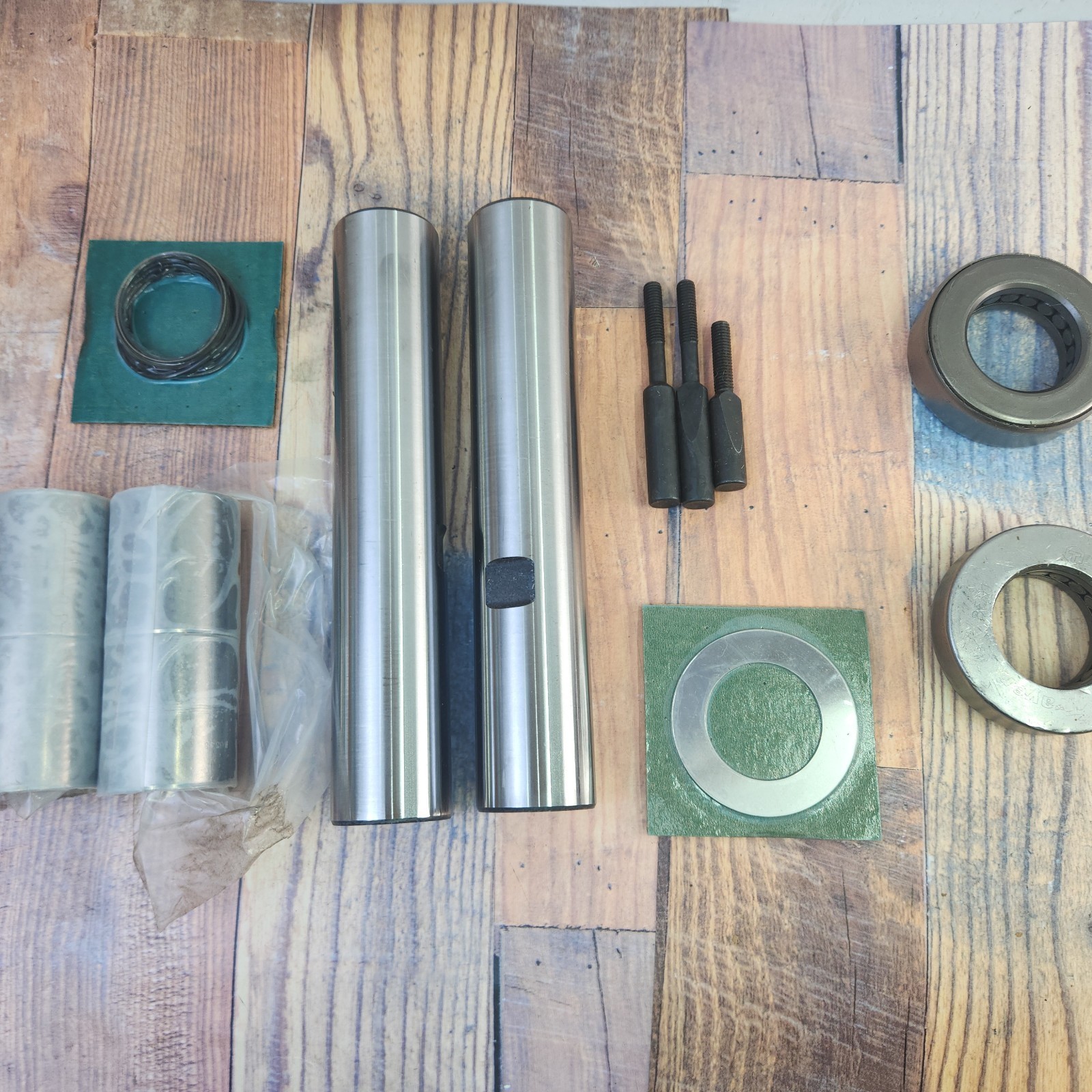 Exact item kit is shown. New open box partial kit with partial original packaging. Includes everything shown. Bearings have noticeable wear from storage and handling. 11x2.046in king pins. This is missing both seals, one bolt, all 4 nuts, and the shims. Set weight 27 lbs. Made in USA. No returns if installed. This item is a new, opened customer return. It has been inspected and passed quality control to insure the condition described and contents are accurate. Please review actual photos as stock photos are not the actual item, our photos are. You will ONLY receive exactly what is shown in photos, regardless of what might have originally been included. Please review our business policies in our store for information regarding returns, shipping and warranties.