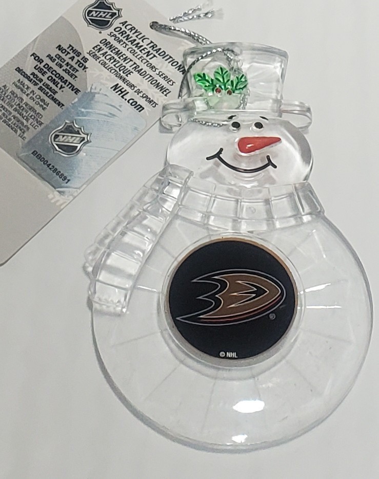 Officially Licensed Anaheim Ducks Acrylic Snowman Ornament.
