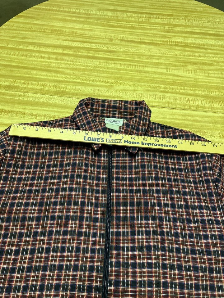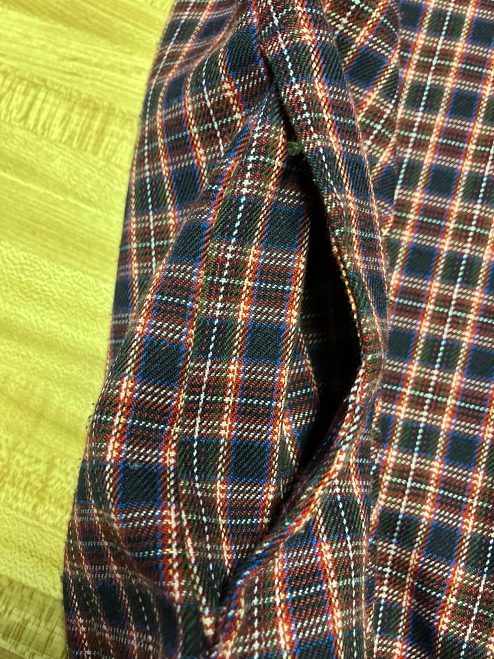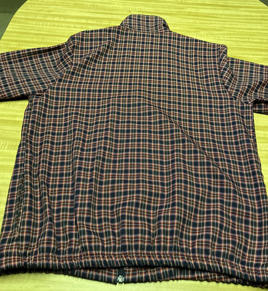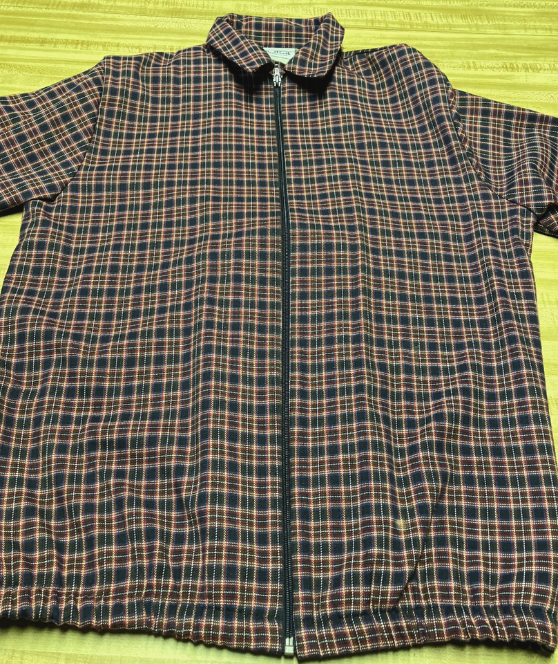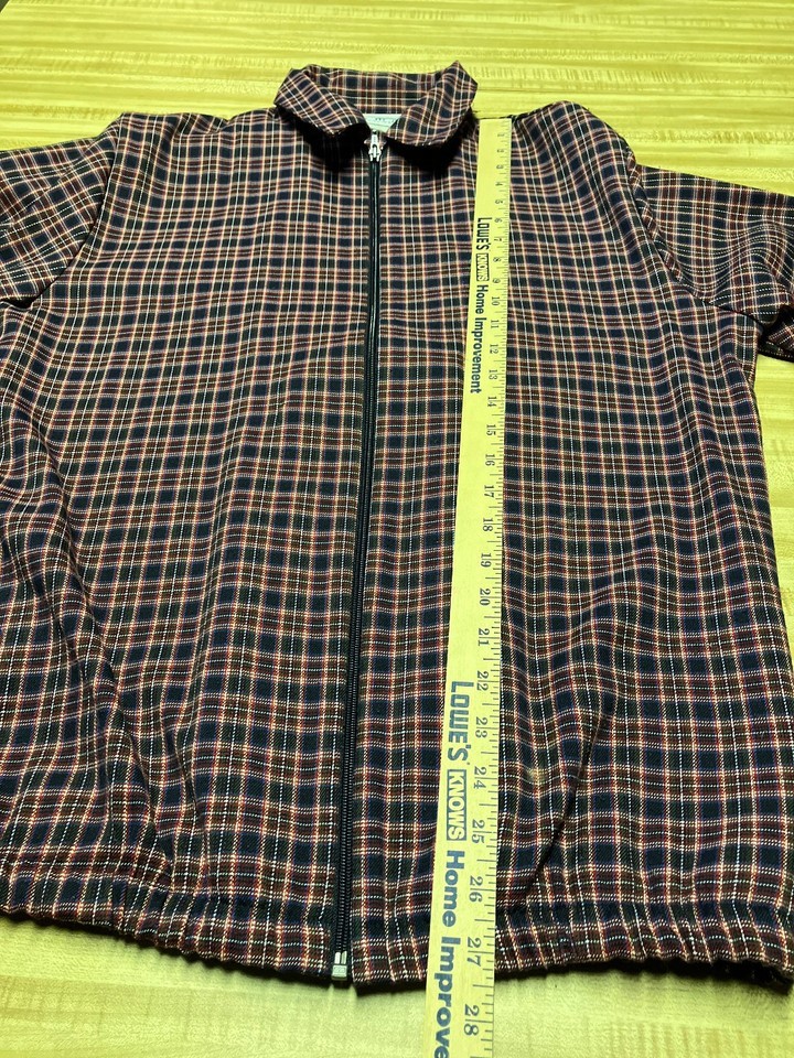 Women's vintage jacket zipper front side pockets multi color plaid pattern