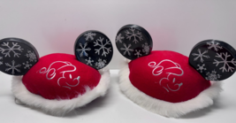 Vintage Disney Christmas Snowflake Mickey Mouse Santa Ears Hat Lot of 2 INFANT