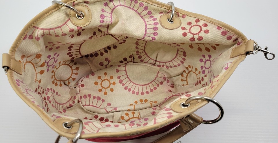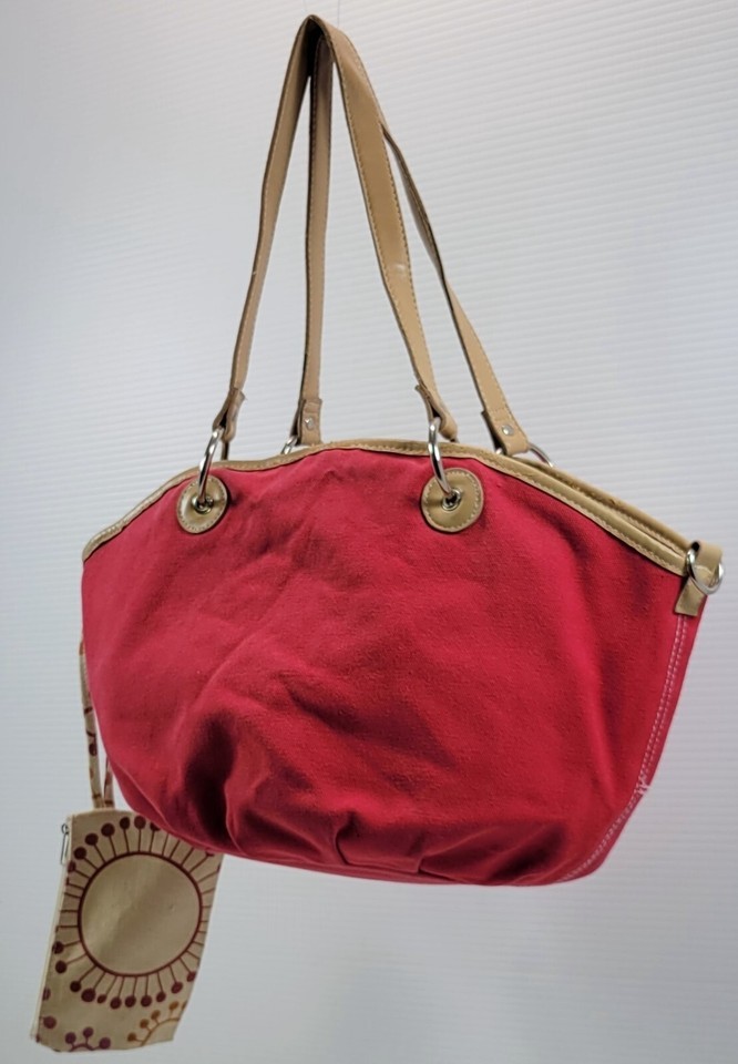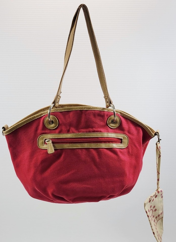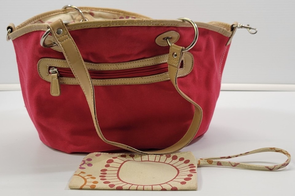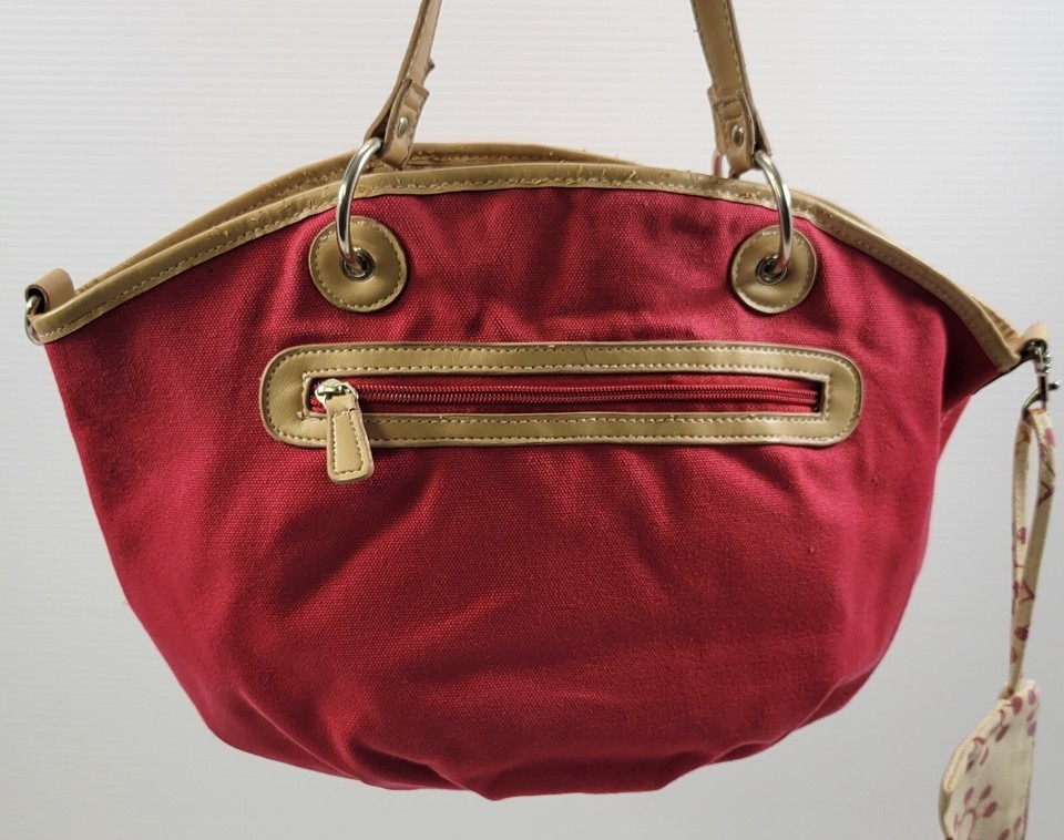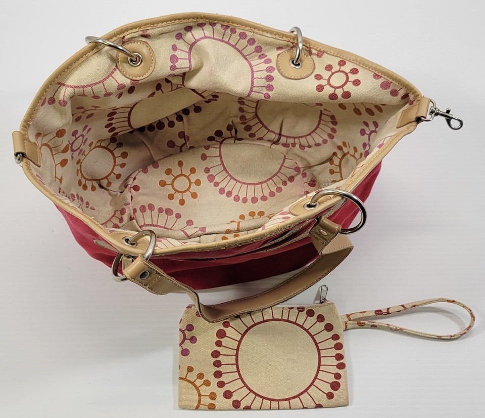 Women Red and Beige Canvas Hand Bag with Wristlet Wallet