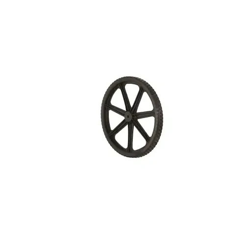 The Rubbermaid M1564200 is a 20-inch flat-free replacement wheel designed specifically for the Rubbermaid 7.5 cu. ft. Big Wheel Cart (Model FG564200BLA). Featuring a durable rubber construction with a knobby tread pattern, it delivers enhanced traction on grass, gravel, dirt, and uneven terrain while supporting up to 200 pounds per wheel. The solid, airless design eliminates the risk of punctures or deflation, ensuring reliable, maintenance-free performance for landscaping, gardening, or hauling tasks. Precision-engineered to match original equipment specifications, this wheel restores mobility and stability to worn or damaged carts with a direct-fit installation using existing axle hardware.
