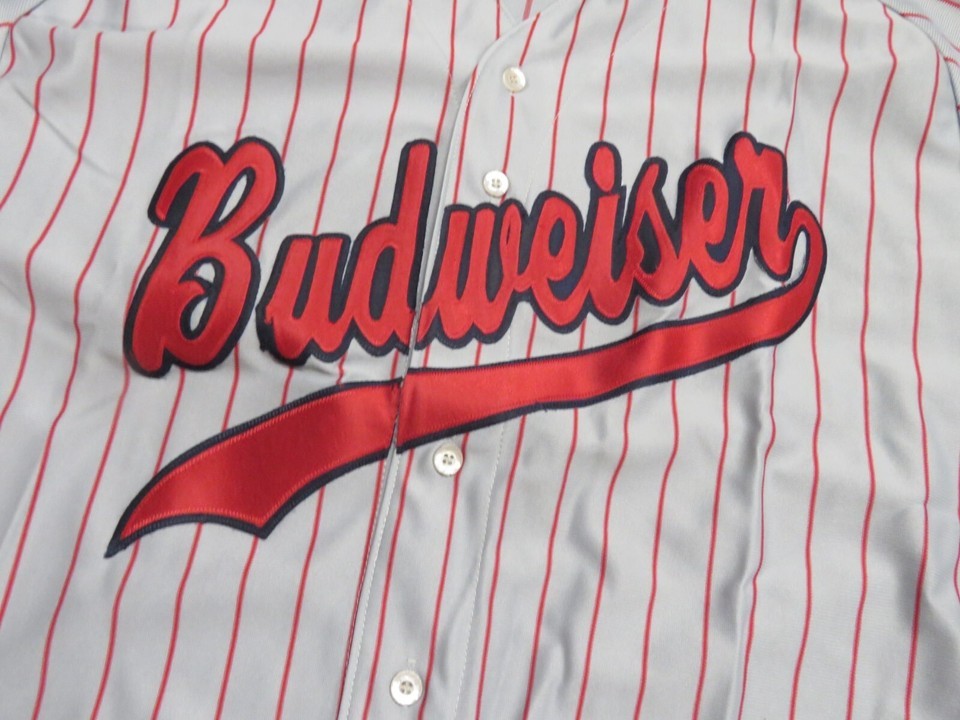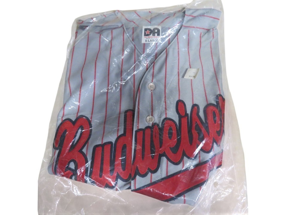 VTG 90s Budweiser Don Alleson Pinstripes Gray Red Softball Jersey L/XL- NEW