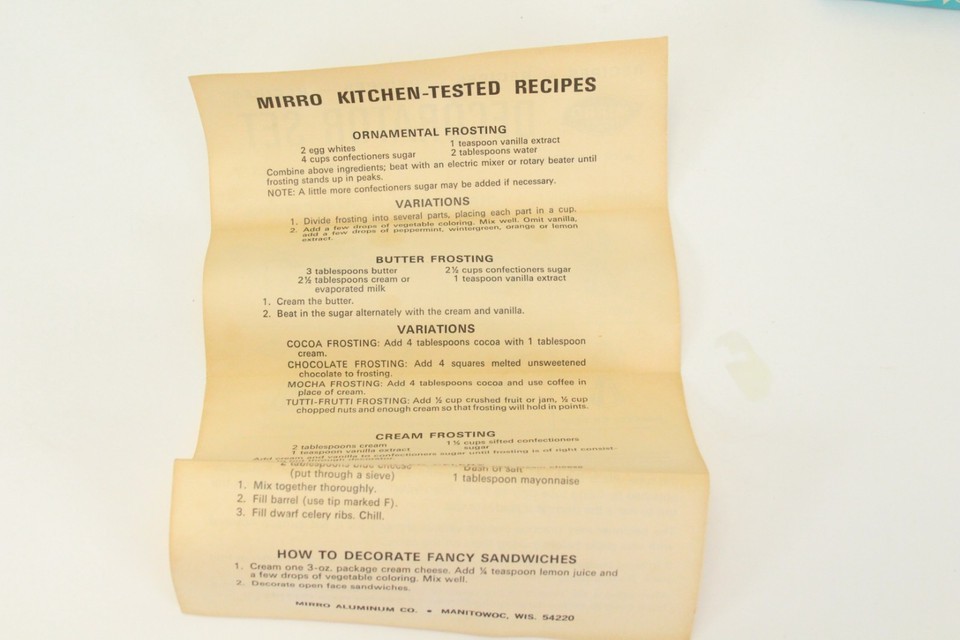 Vintage Mirro Decorator Kit M-0360 Cake Decorating 6 Tips Plunger Instructions