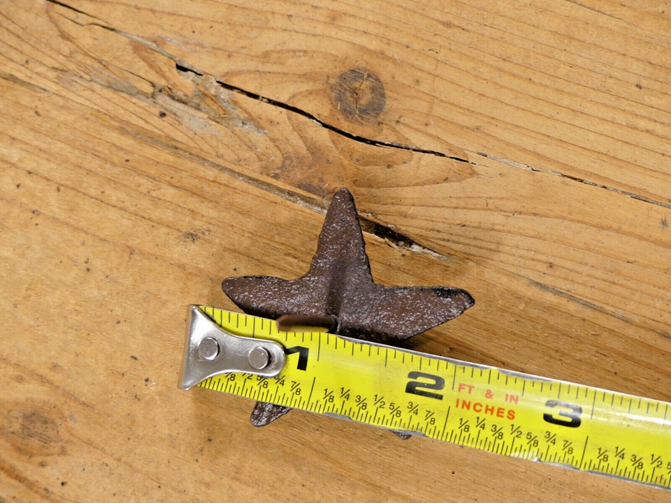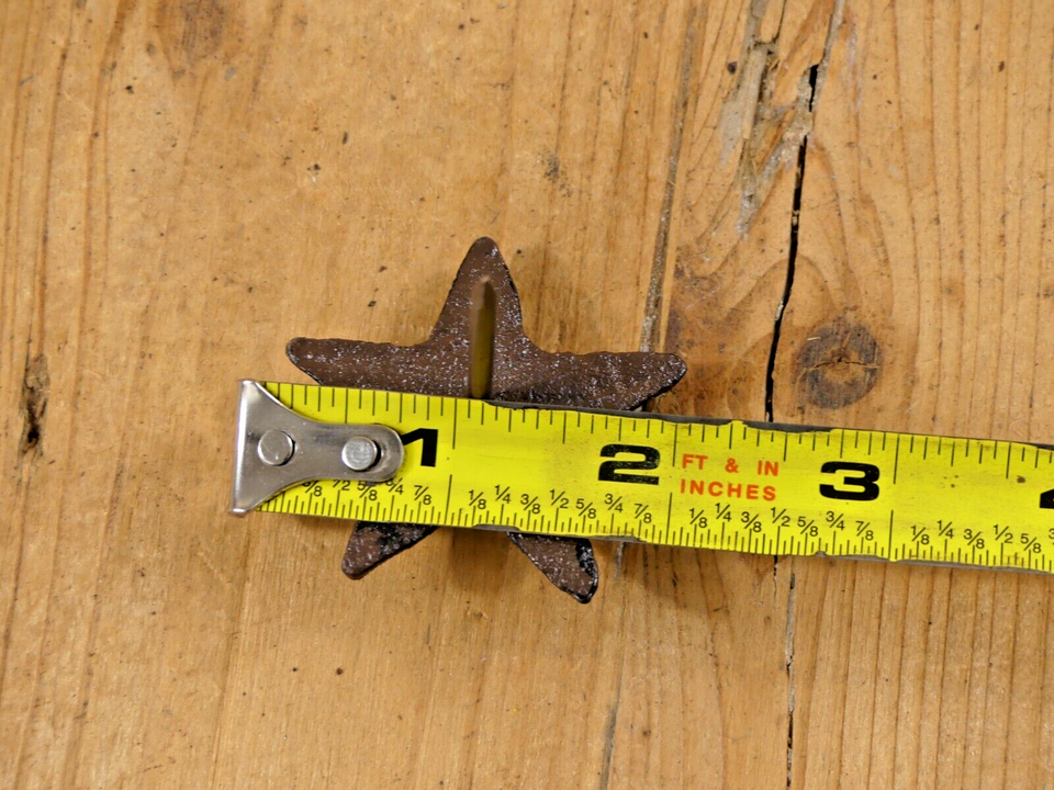 STAR NAILS MEASURE APPROXIMATELY 1 7/8" WIDE. THE NAIL EXTENDS APPROXIMATELY 1 1/4" LONG.