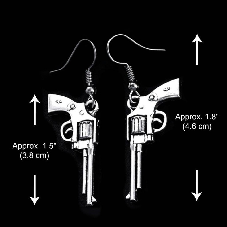 REVOLVER EARRINGS 1.5" Gun Charm Pistol Handgun Western Stainless Steel Wire NEW
