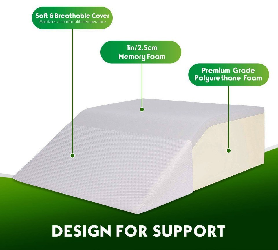 ? Made from specially designed molded memory foam, the Orthopedic Leg Wedge pillow provide ergonomic raised support to your back area and provides elevated support to assist with Surgical recovery