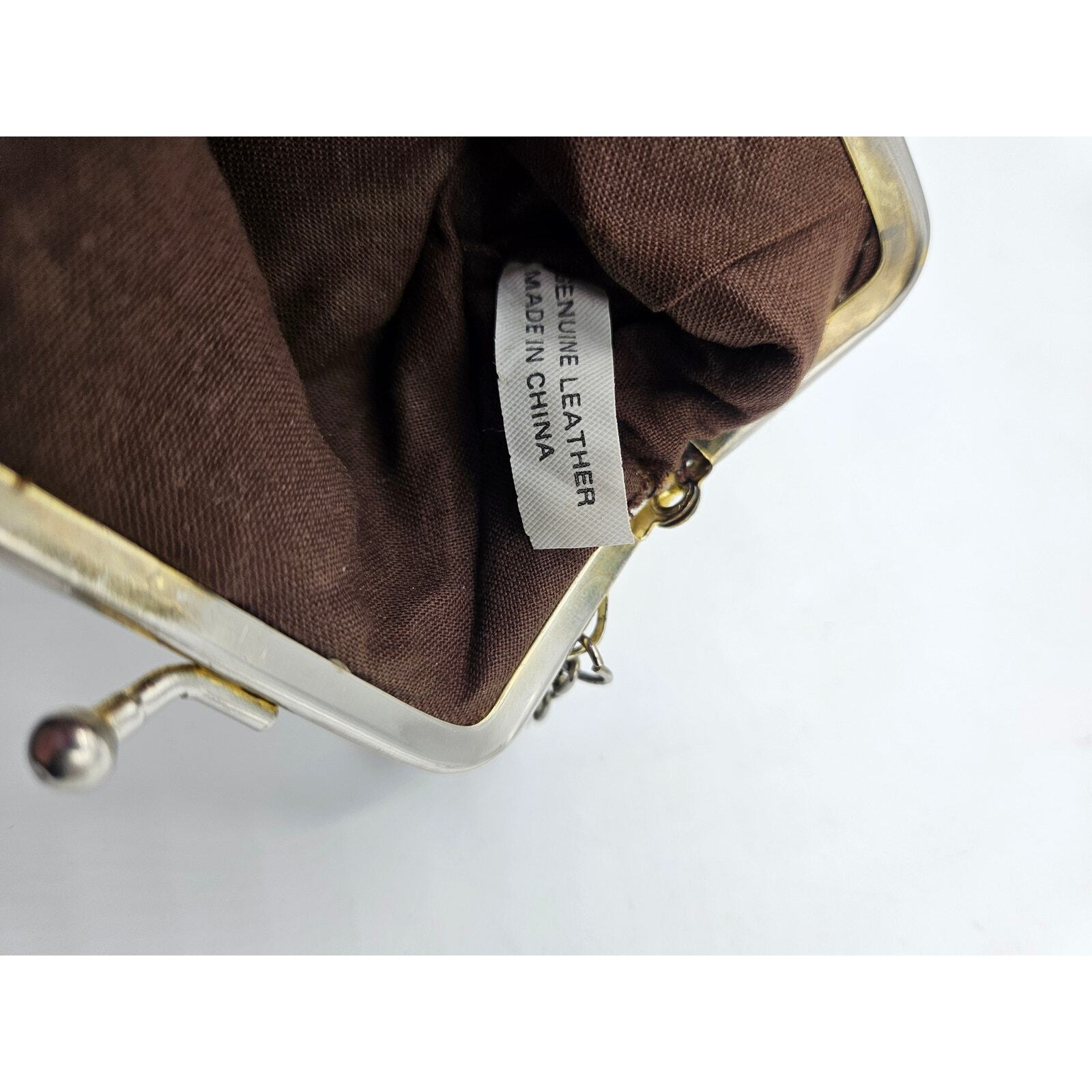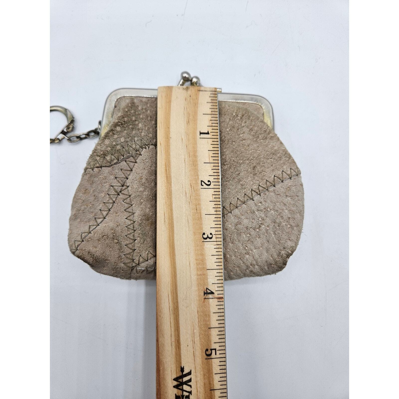 Womens Leather Coin Purse Key Chain Brown Snap Closure