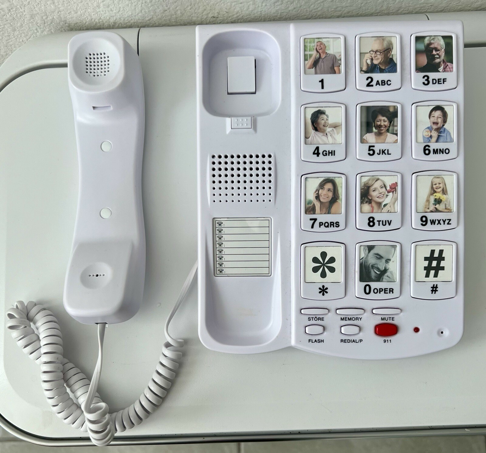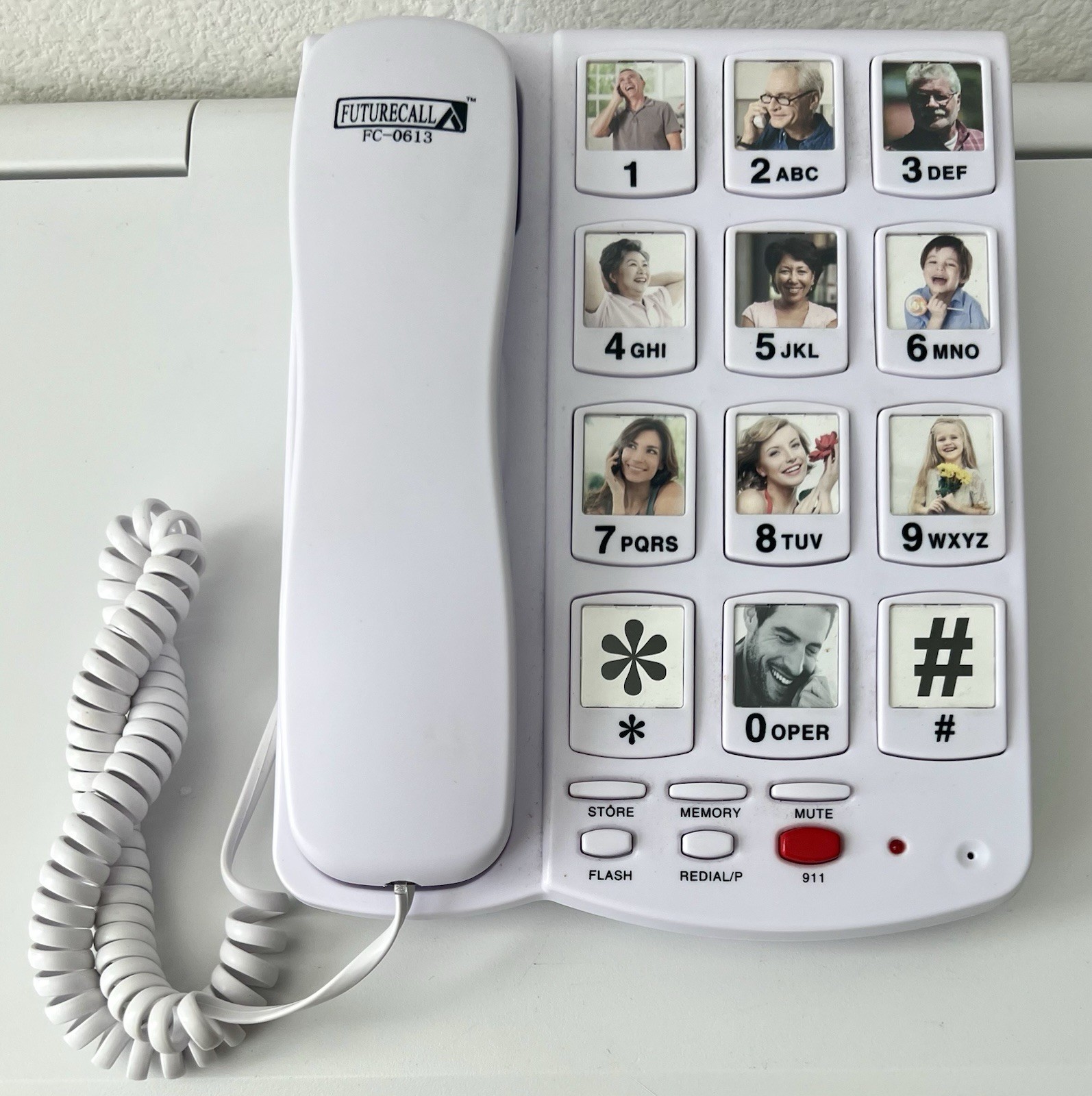 The Future Call Picture Phone with One Touch Dialing Model FC-0613 is a corded telephone designed for easy use and enhanced communication. With its sleek white design and convenient one-touch dialing feature, this phone from Future Call is perfect for home or office settings. The FC-0613 model is user-friendly and offers a clear picture display for added convenience when making or receiving calls. Upgrade your home telephones with this modern and functional picture phone.