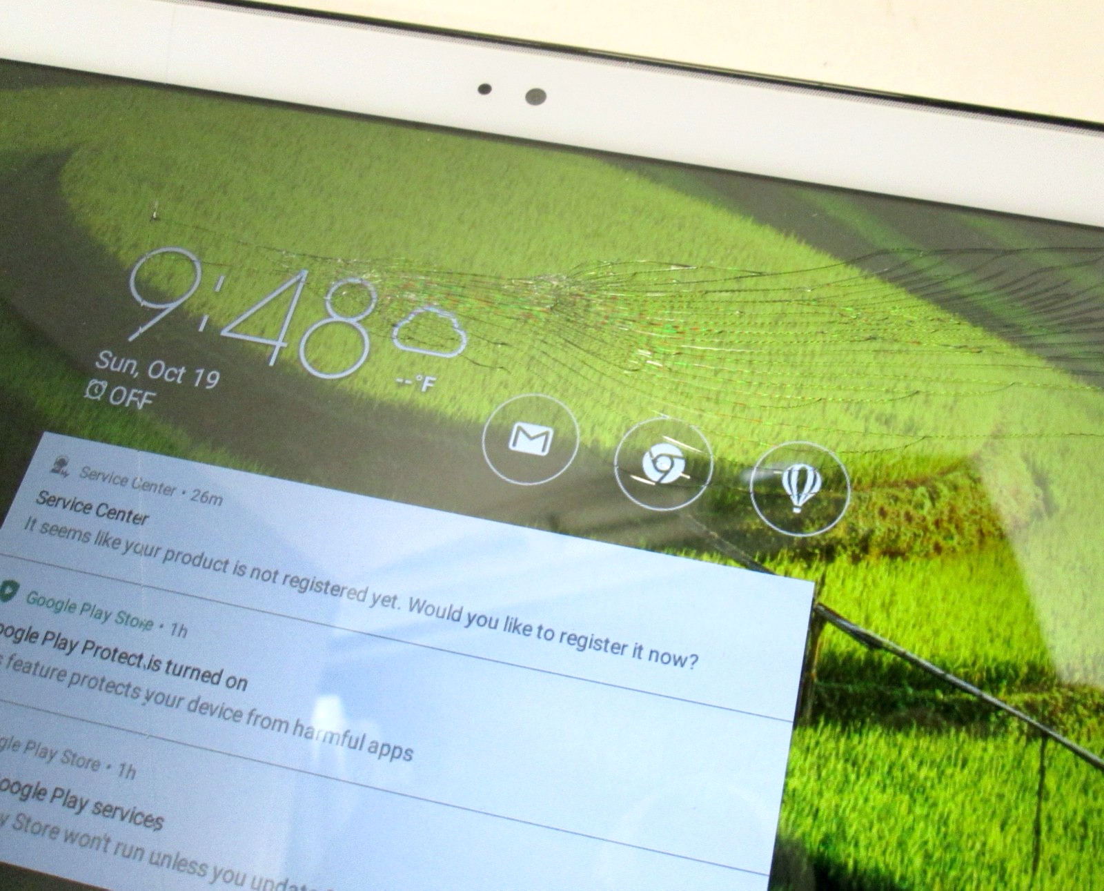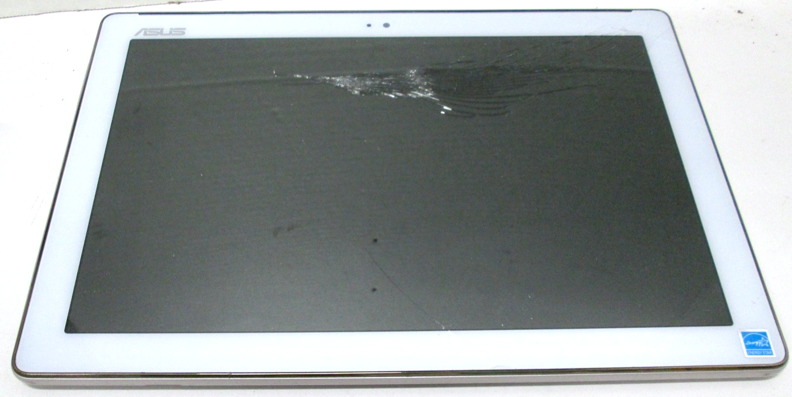 Asus ZenPad10 P028 Android Tablet in White. The tablet charges and powers on. The digitizer is cracked but the screen is good. The touch only works in a few small spots. The digitizer will have to be replaced to use the tablet. The back has a few scratches. There is no Google or account locks. Tablet only, no charger or cables included. Sold "as is" with no returns or refunds. #B