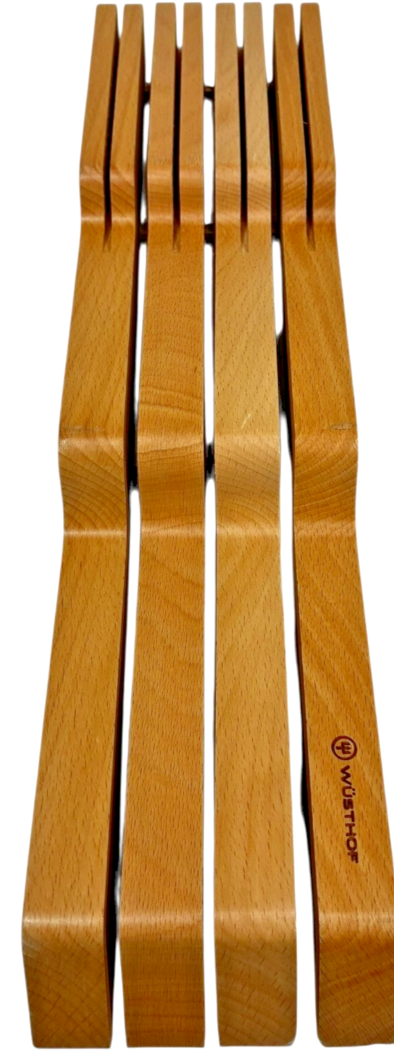 The WÜSTHOF Small In-Drawer Knife Tray is the ideal way to store your cutlery without taking up valuable counter space. This in-drawer knife storage tray is made of beech wood and holds up to seven knives.