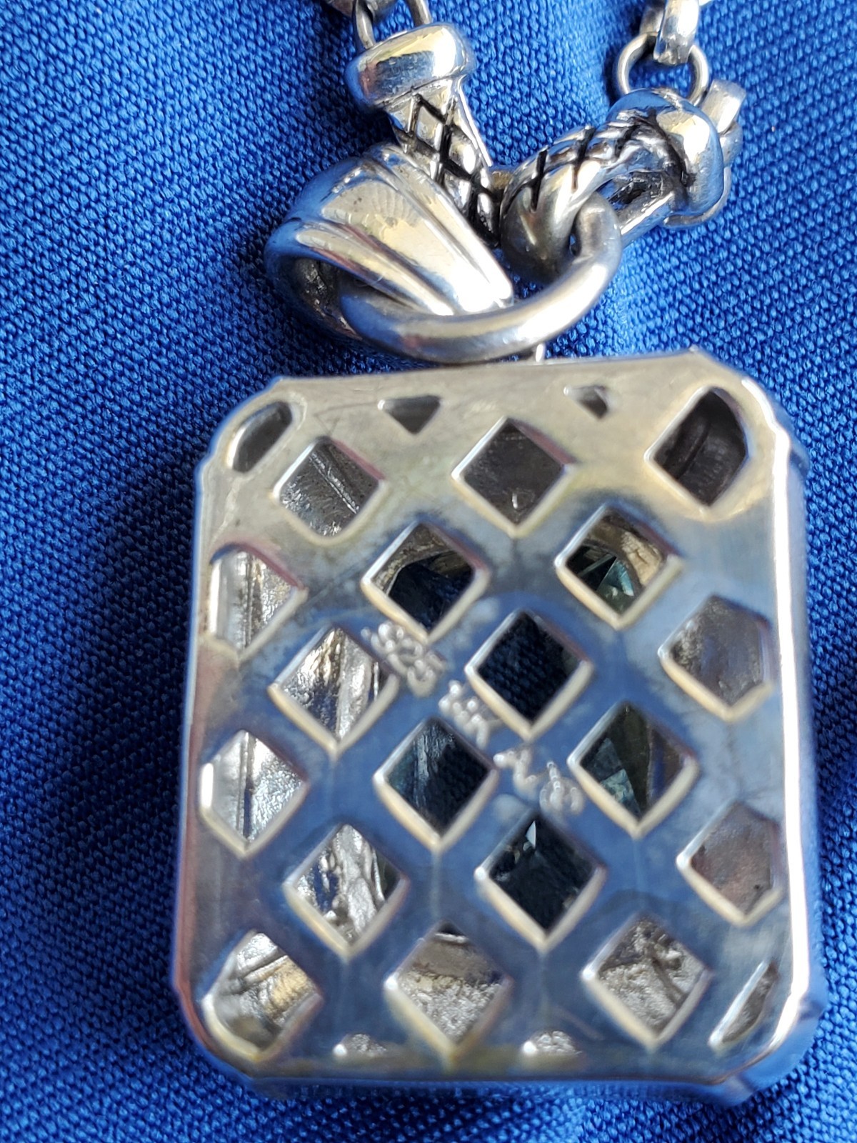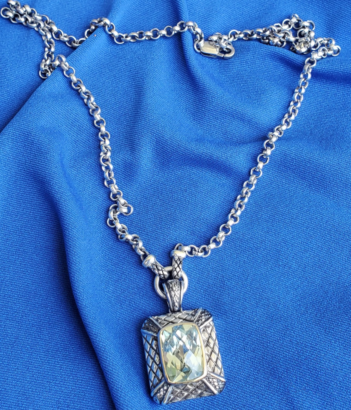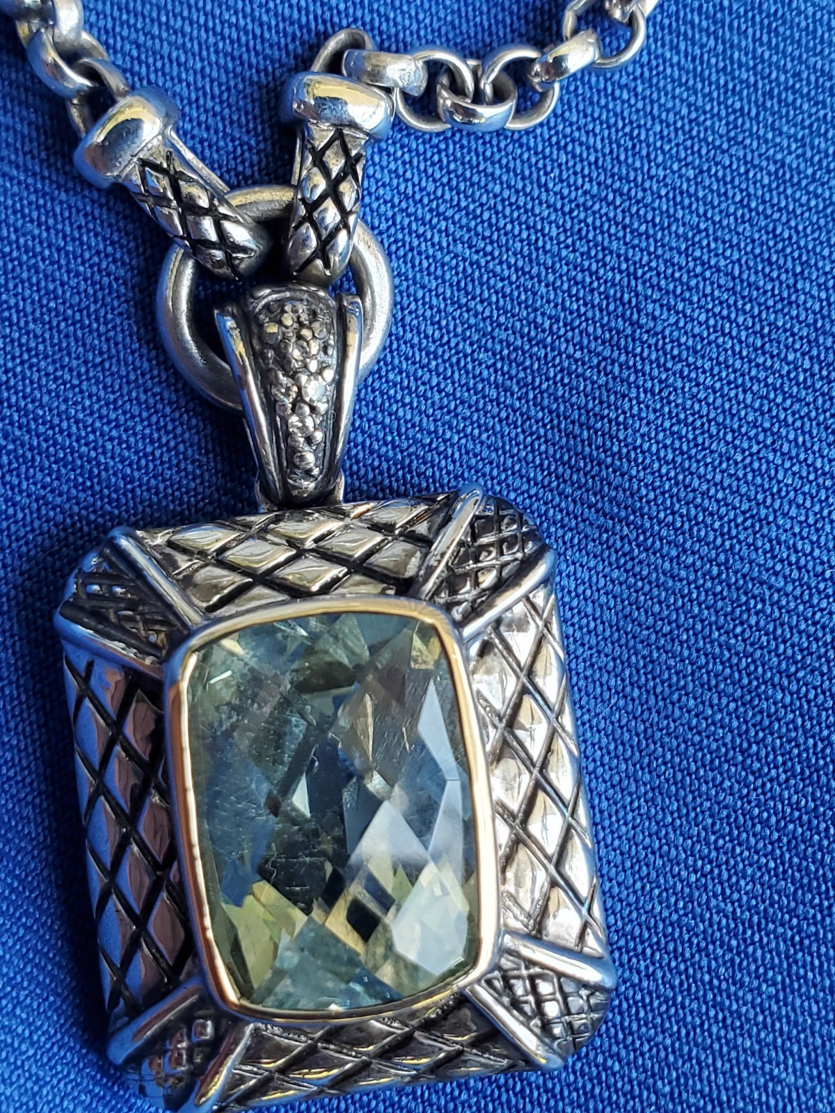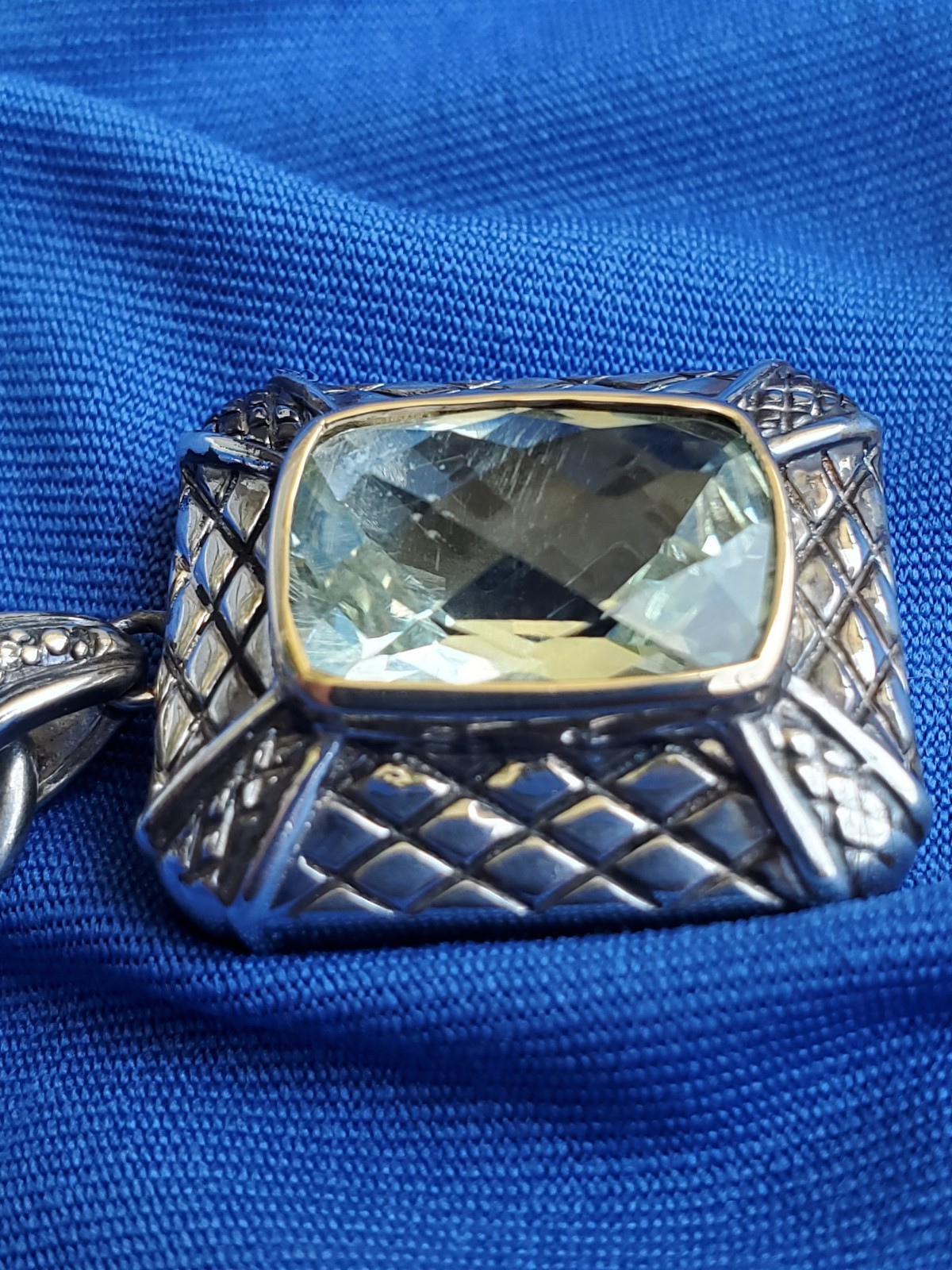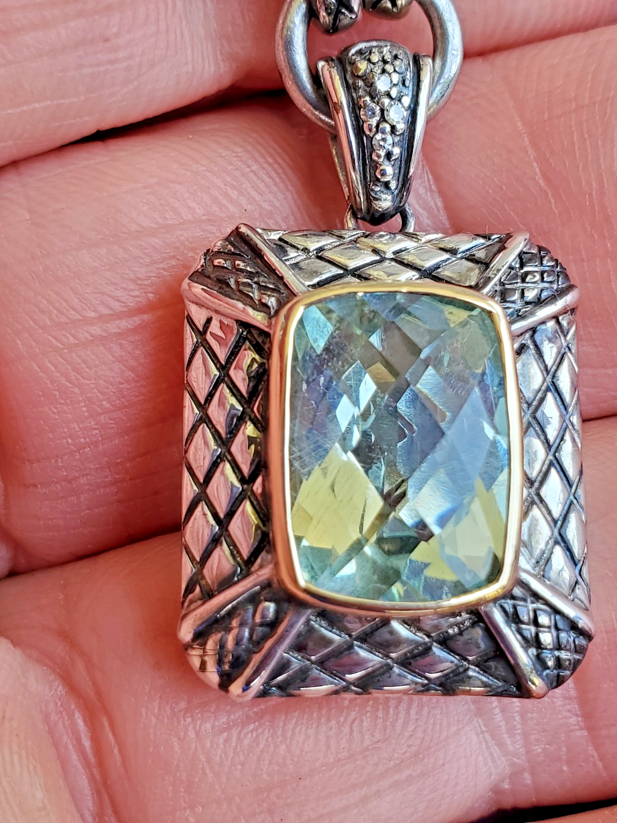 Vahan Design Prasiolite Sterling Silver 14K Gold Diamond Necklace 18 inch 23 gr.