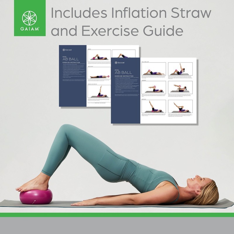 Gaiam Mini Ab Ball Soft, lightweight 8? inflatable ball Help enhance core muscle activation, strengthen the back and increase range of motion Great for pre-and-post workout to activate the body, relax the back and aide with alignment Includes inflation straw and Exercise Guide Versatile Functionality: Ideal for targeting abdominal workouts, this ball can also be placed between the legs to introduce added resistance during lower body exercises