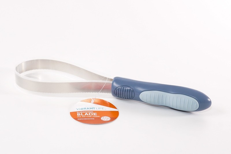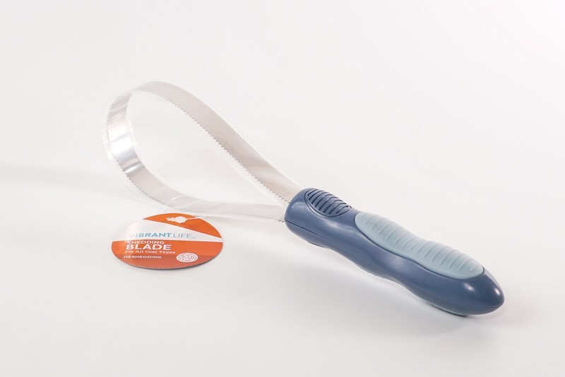 The Vibrant Life Shedding Blade has coarse teeth on one side and fine teeth on the other to help reduce shedding by removing loose, dead hair. Use the coarse teeth to remove loose hair from the coat, and use the fine teeth after bathing your dog to remove excess water from their fur and loose hair on short-haired breeds. The textured grip gives you control making both you and your dog are more comfortable during grooming. Be sure to tend to the harder to reach places on your dog by expanding or retracting the blade and handle to make it the ideal size for the specific area. Help decrease your dog's shedding and lighten up their coat with the Vibrant Life Shedding Blade.