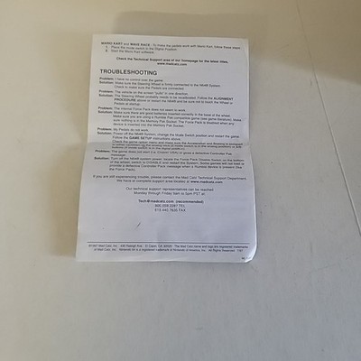 The Mad Catz Nintendo 64 Analog Steering Wheel User's Guide is a manual designed specifically for the Mad Catz Nintendo 64 steering wheel controller. This guide provides detailed instructions on how to set up and use the steering wheel to enhance gameplay on the Nintendo 64 platform. It includes information on the features of the Mad Catz steering wheel, as well as tips and tricks for getting the most out of your gaming experience. This user's guide is essential for those looking to maximize their gaming enjoyment with the Mad Catz Nintendo 64 steering wheel controller.
