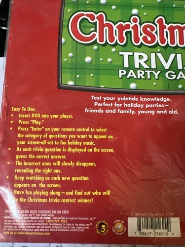 Christmas trivia party game. Use the DVD to play the game on your television.