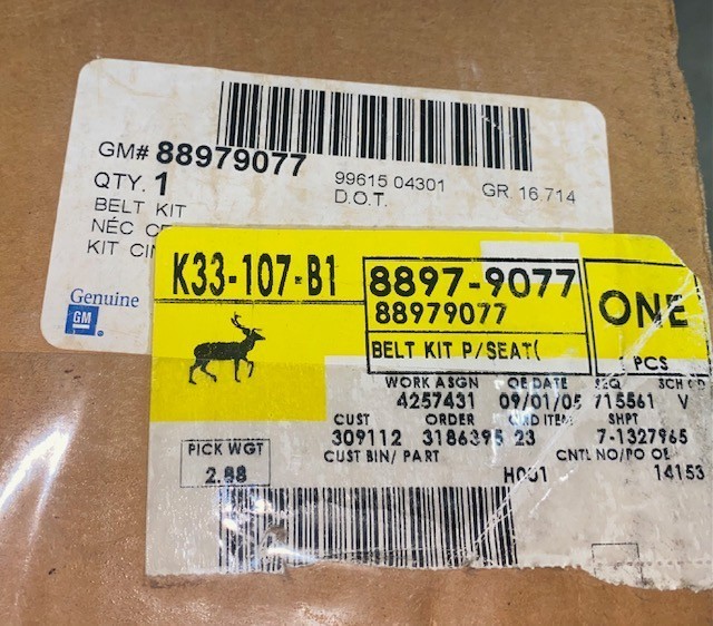 2001-2002 GENUINE GM PASSENGER BELT & RETRACTOR, NEW OEM PART, P/N 88979077