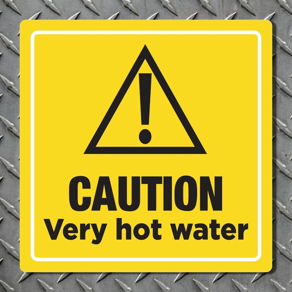 Caution Very Hot Water High Quality Safety Decal - Thick 6 mil - Long Lasting
