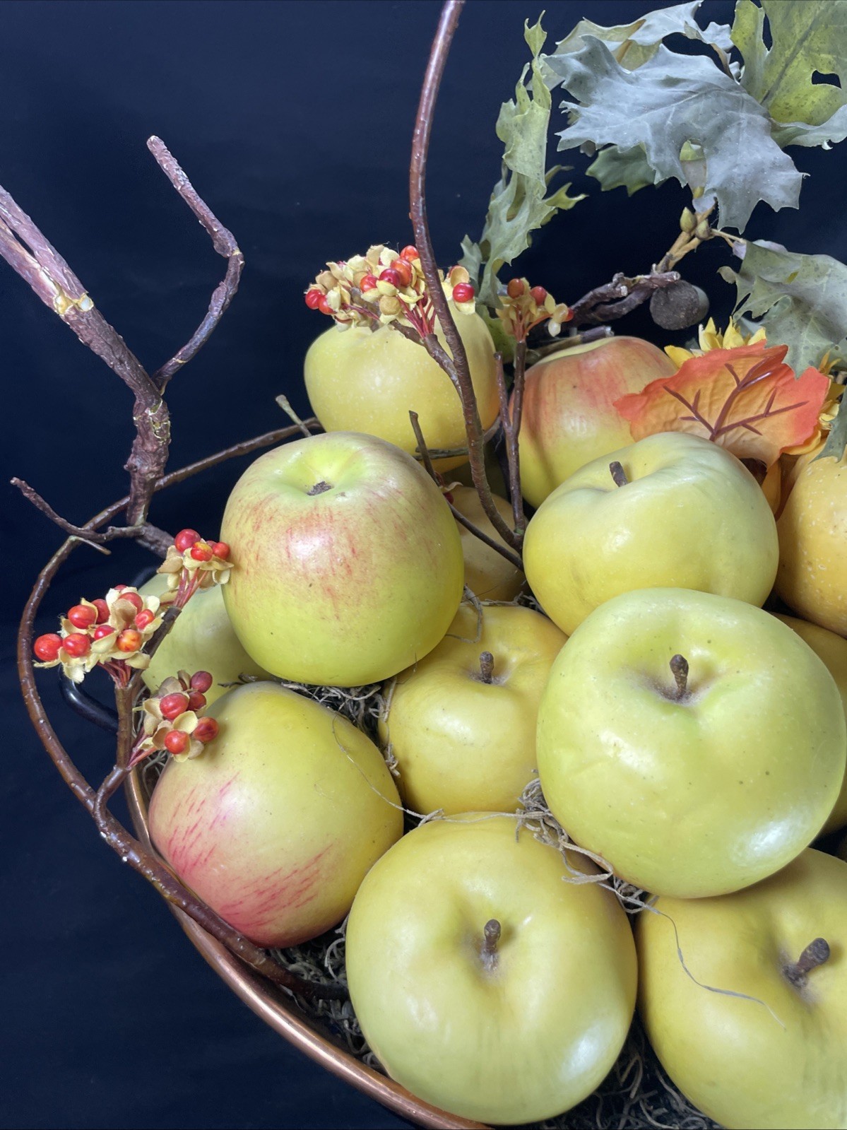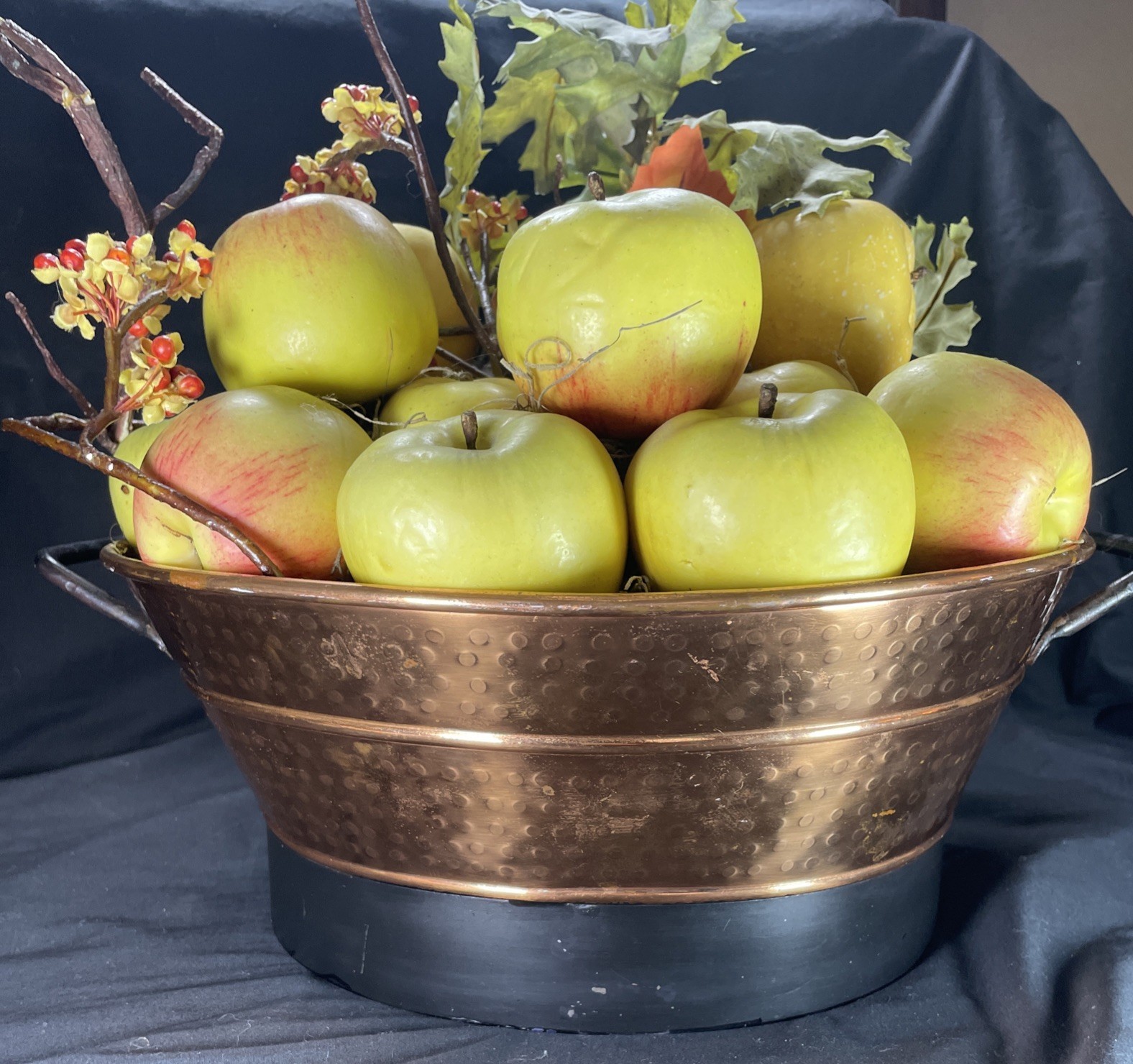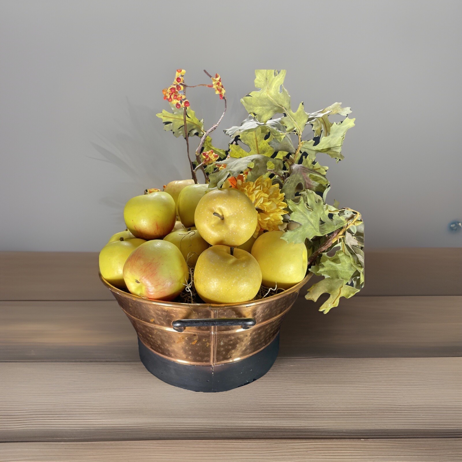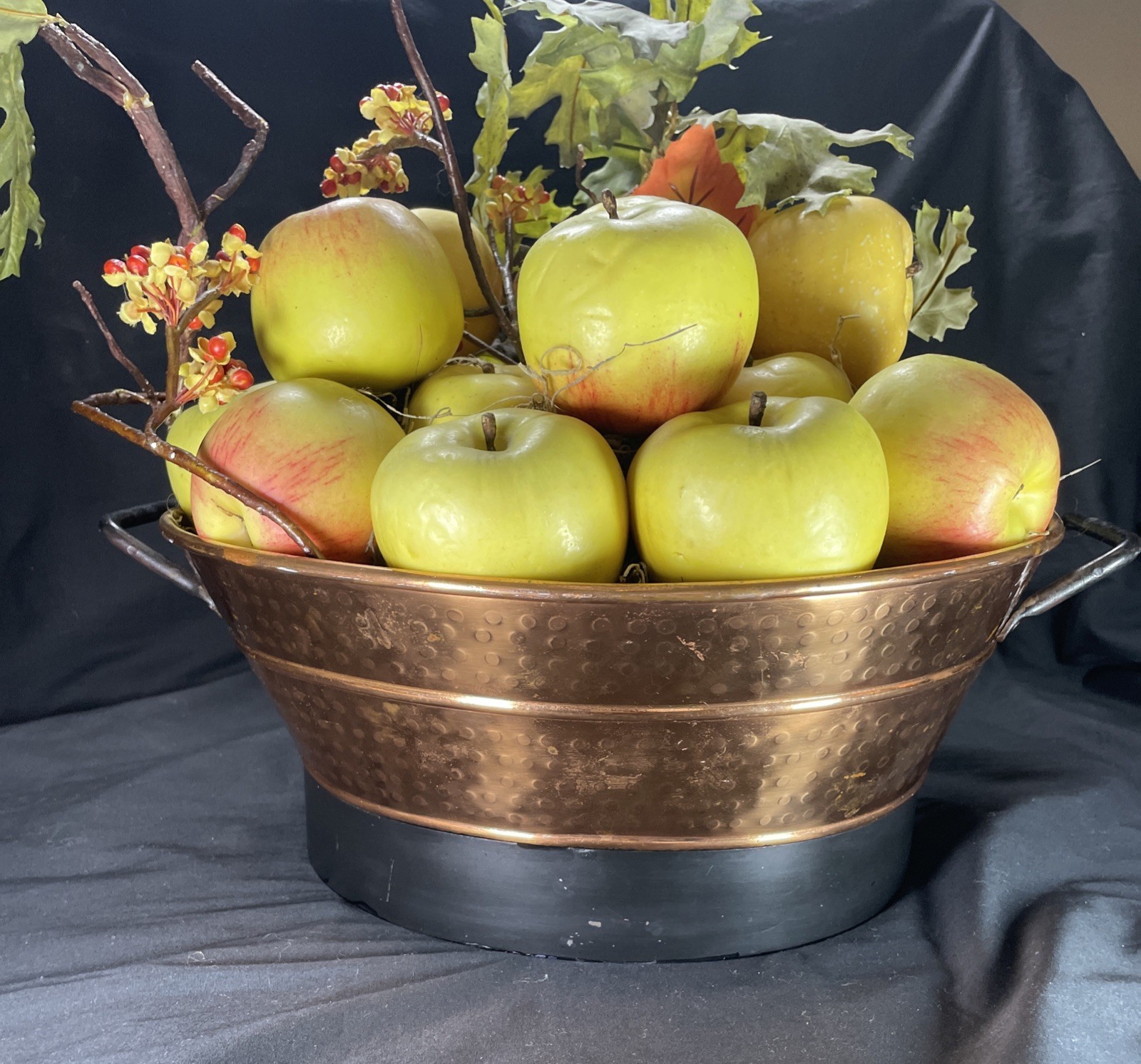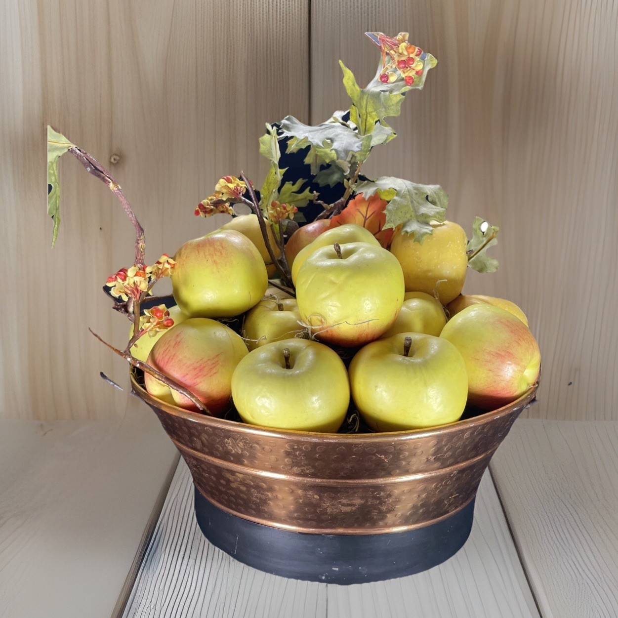 Home Decor Large Copper Bucket with Plastic Faux Apples