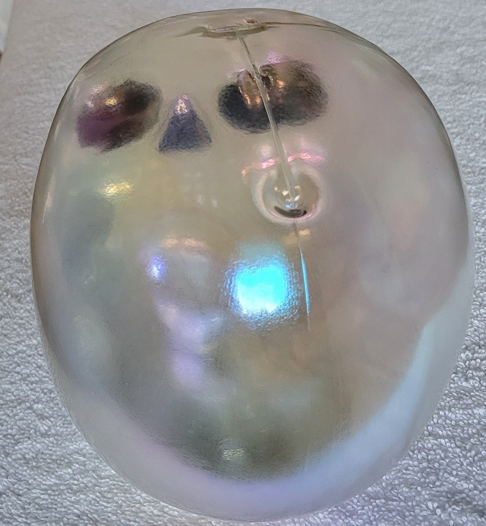 Black glitter on the eye sockets and now. Light weight iridescent plastic