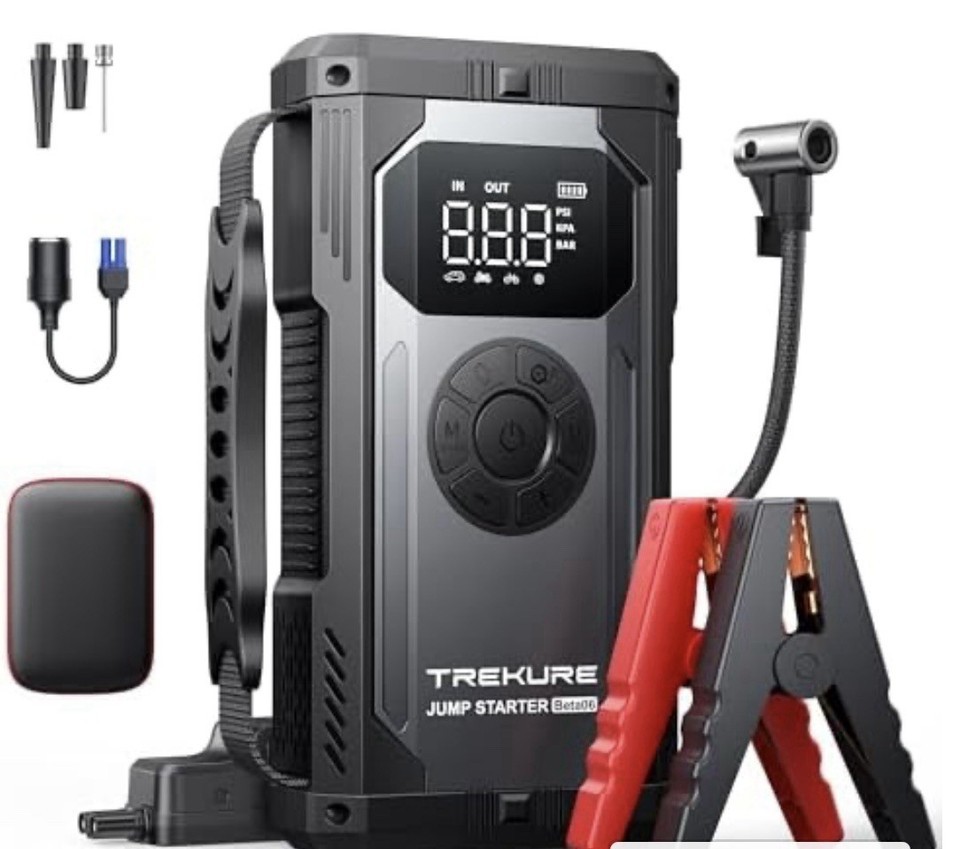 Portable Car Jump Starter with Air Compressor, TREKURE 150PSI 4000A Car Battery. Condition is New. Shipped with USPS Ground Advantage.