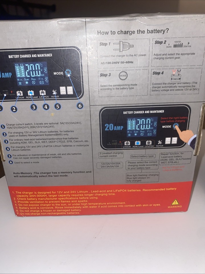 20amp 12v/24v Automatic Battery Charger And Maintainer Open Box. Shipped with USPS Ground Advantage.