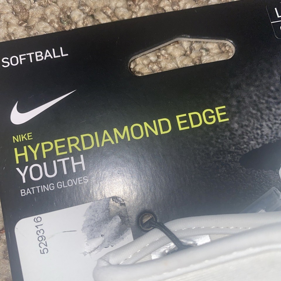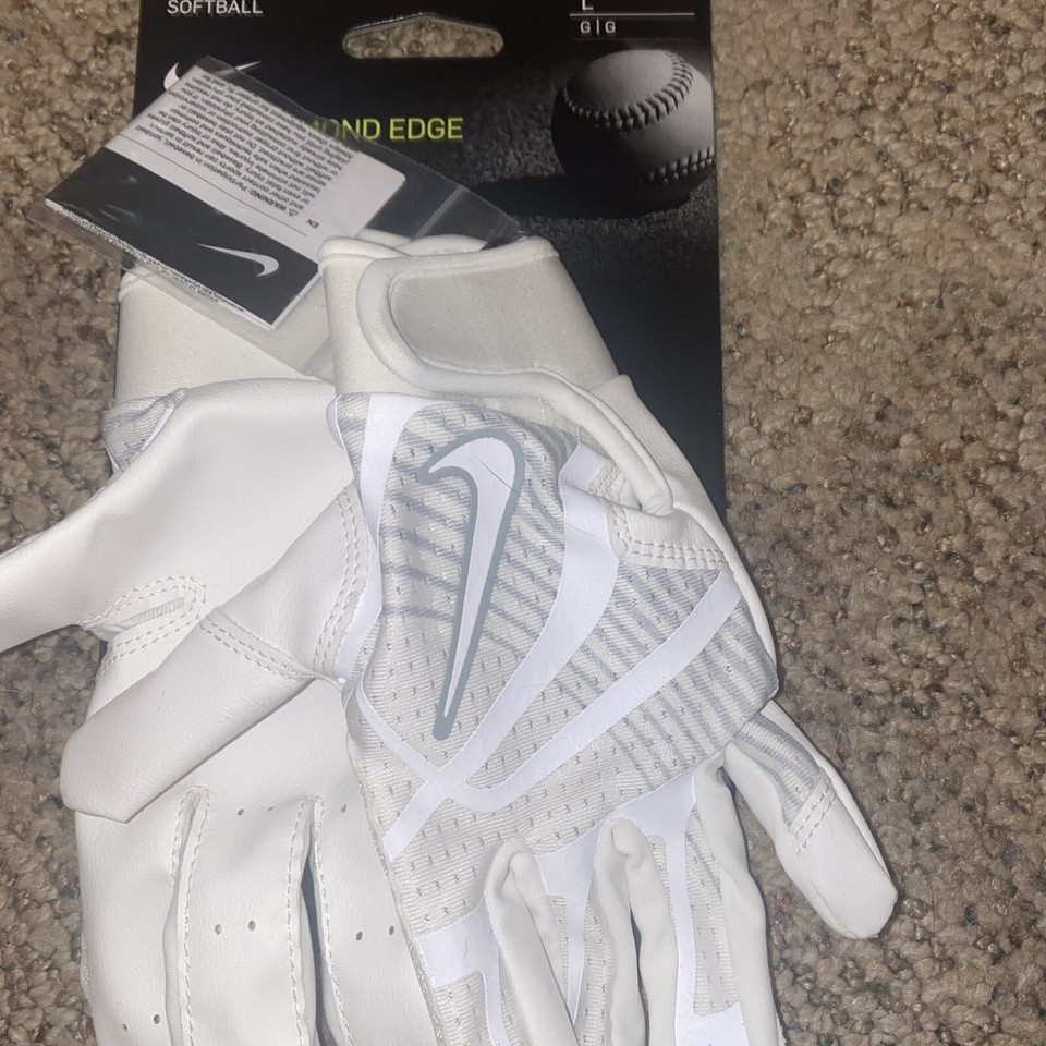 Nike Hyperdiamond Edge White Grey Softball Batting Gloves - Size L NEW!. Condition is New with tags. Shipped with USPS Ground Advantage.