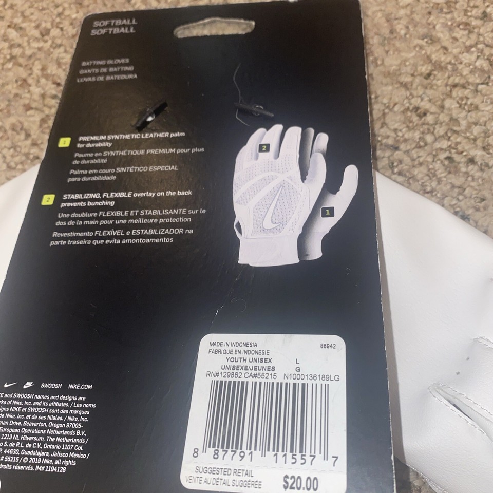 Nike Hyperdiamond Edge White & Grey Softball Batting Gloves - Size L NEW!