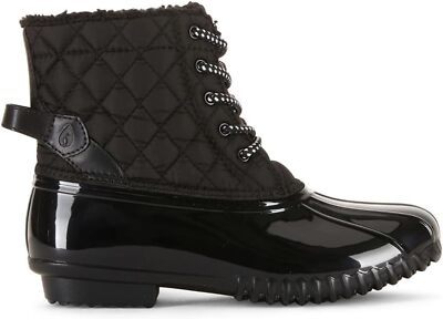 Brand New Sporto Women's Andie Duck Boots (Black) Durable Construction: Made with high-quality materials to withstand various weather conditions and provide long-lasting wear. Stylish Design: Features a sleek and modern look, perfect for casual outings and complementing any wardrobe. Comfortable Fit: Equipped with a cushioned insole and padded collar for maximum comfort during all-day wear. Water-Resistant: Designed to keep your feet dry and warm in wet and cold conditions, making it ideal for fall and winter. Easy On and Off: Includes convenient side zippers and adjustable laces for a secure and customized fit.