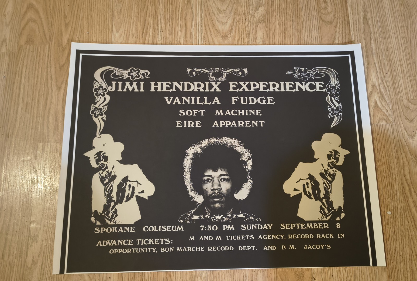 1968 Jimi Hendrix Experience Vanilla Fudge Spokane Coliseum Handbill Poster