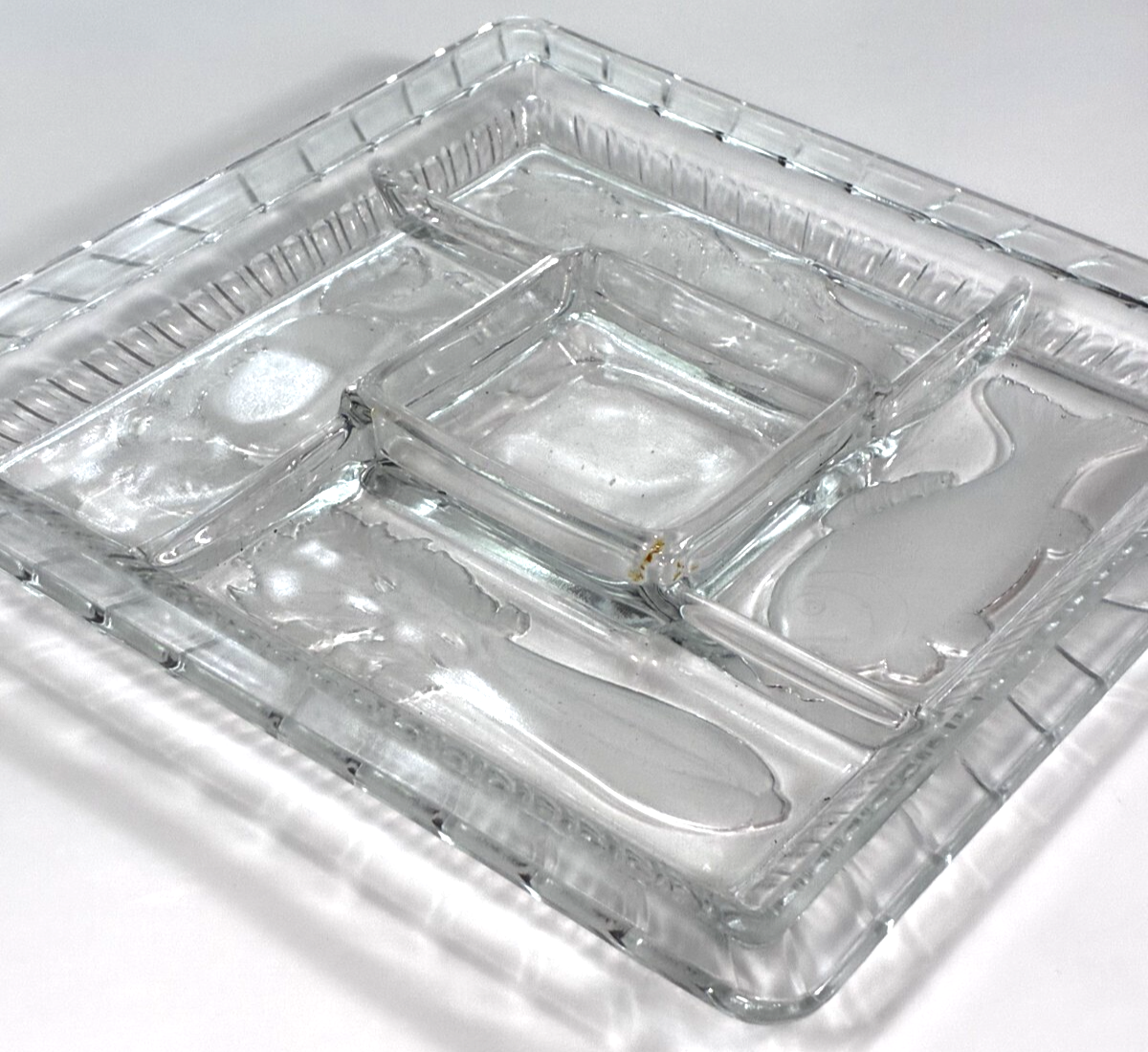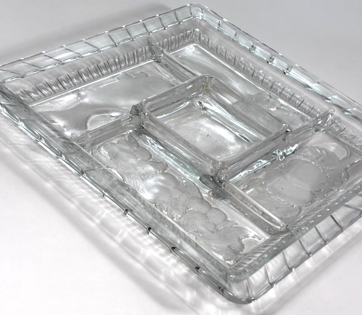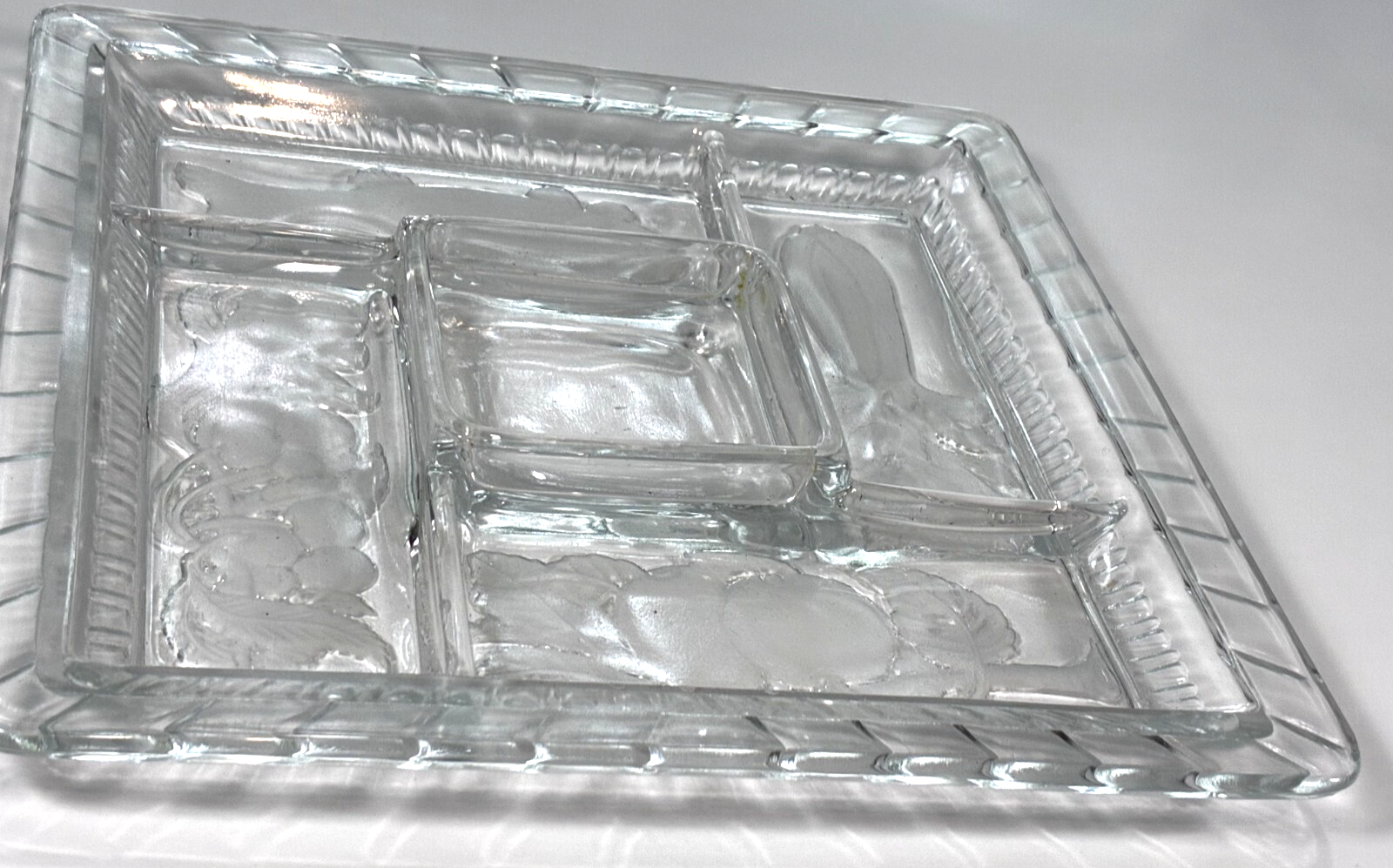 Intaglio Duncan Miller 5 section Etched Glass Relish Appetizer Tray 10 x 10 inches