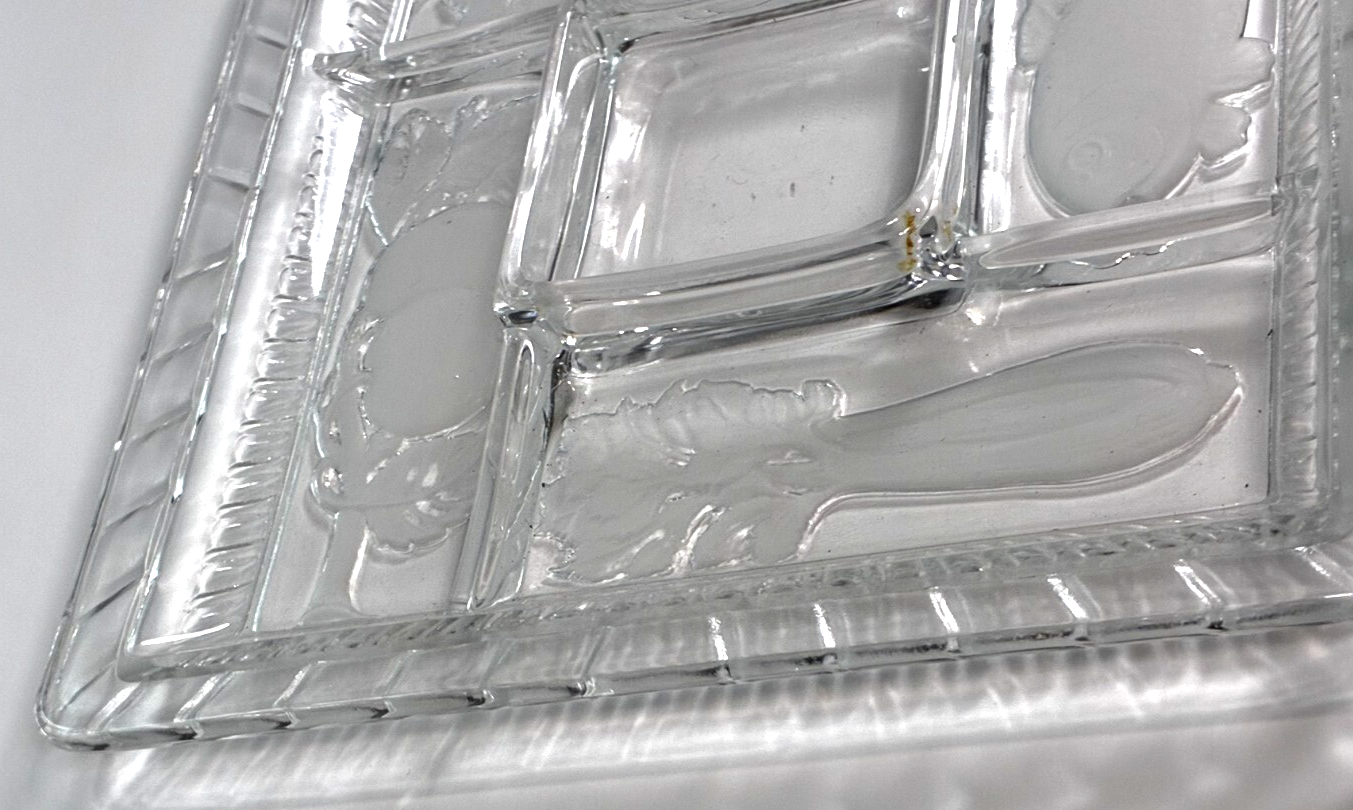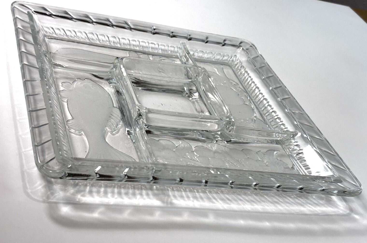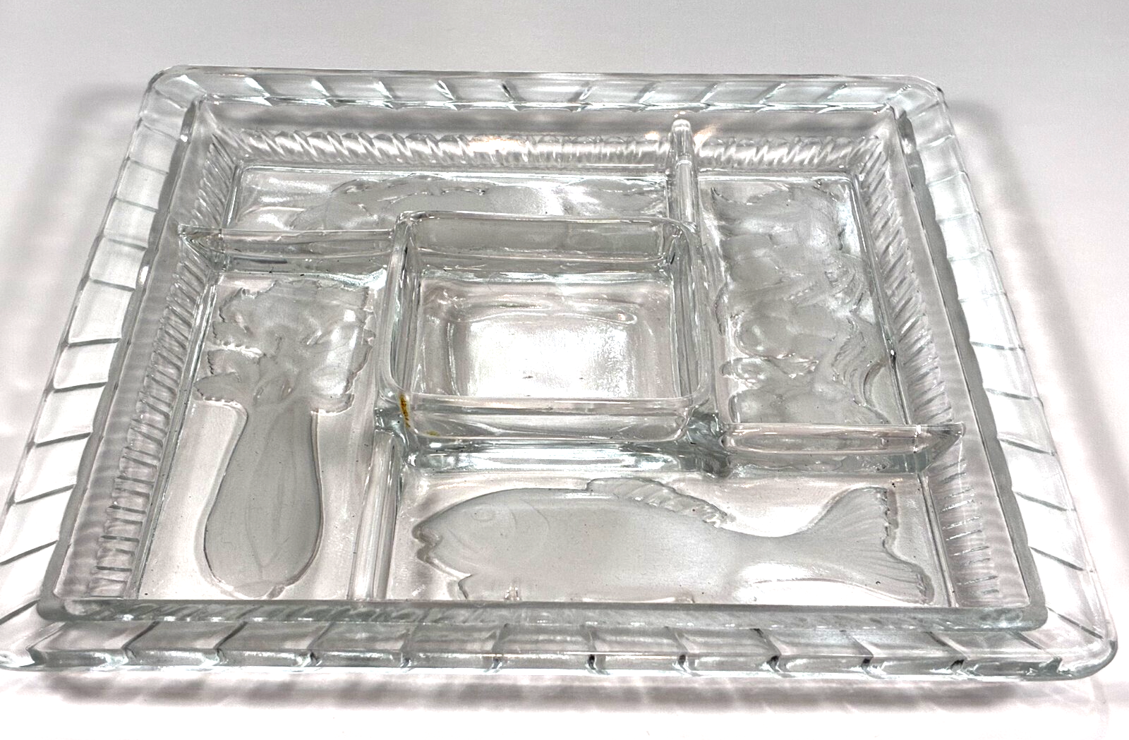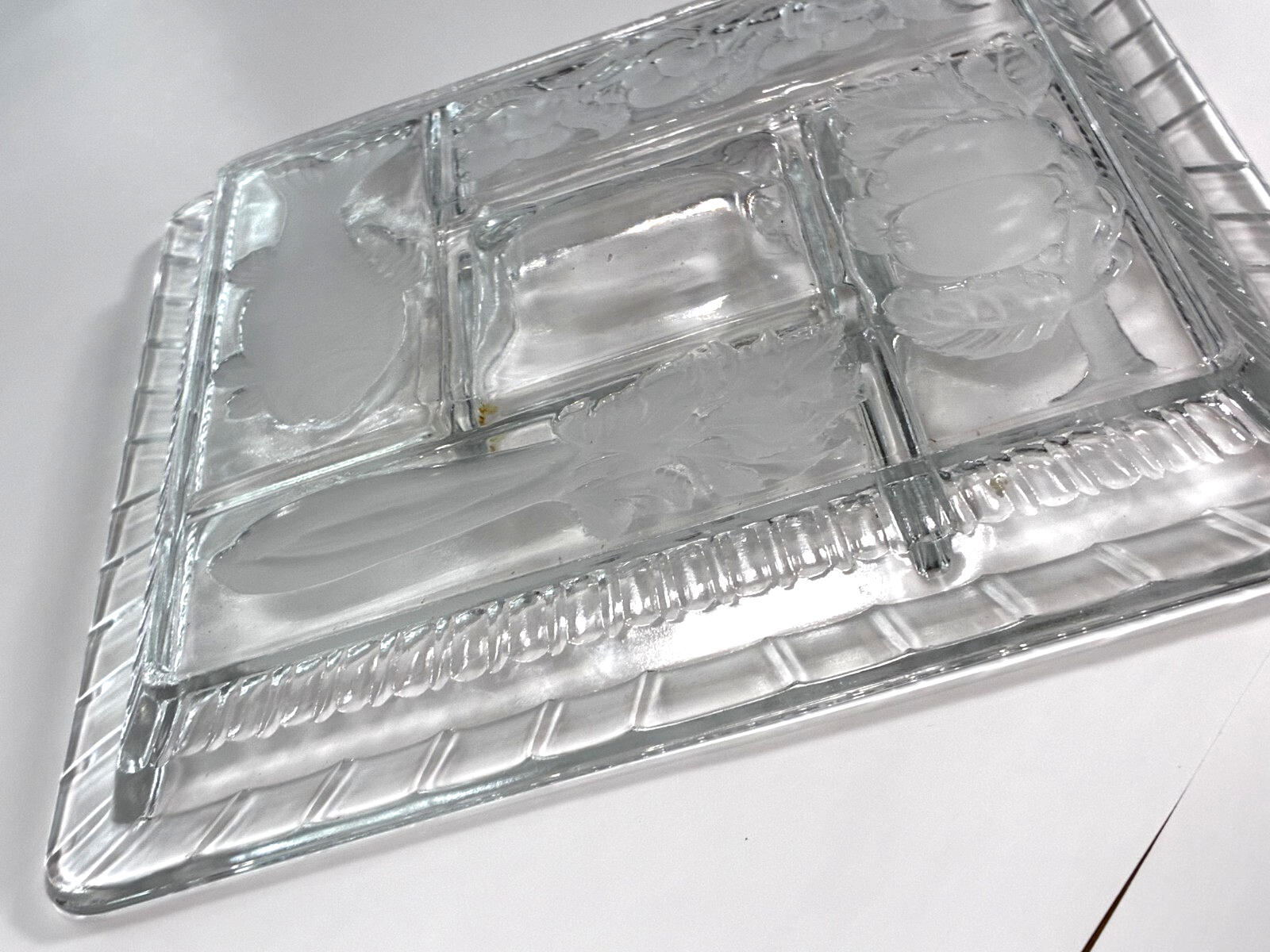 Intaglio Duncan Miller 5 section Etched Glass Relish Appetizer Tray 10 x 10 inches