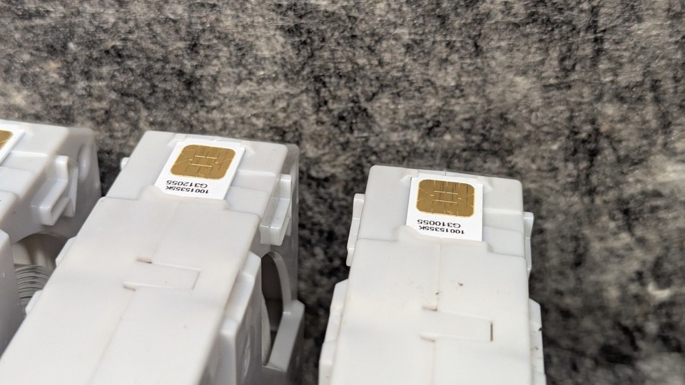 I believe they are all brand new and unused. The box was damaged and thrown out. The images show 4 but a total of 5 are included. Wear on them as they were loose in the box. One of the cartridges is missing the chip which fell off which being out of the box. So listing them for parts and as is.