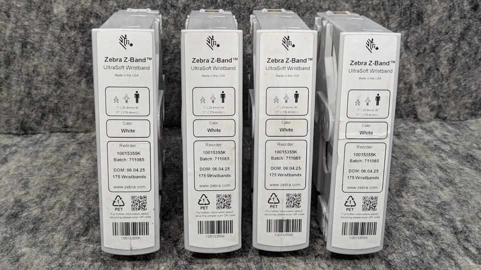 5 x Zebra 10015355K 1"×11" Adult Z-Band UltraSoft Wristband Cartridge 175 White