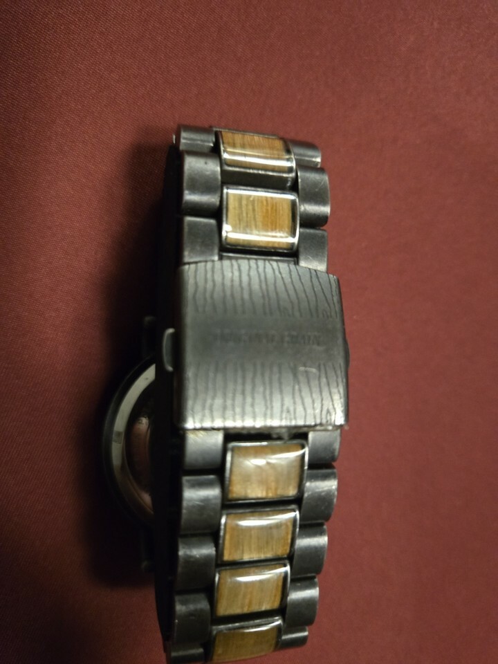 Band: Stonewashed stainless steel with Koa wood center links (23mm width)