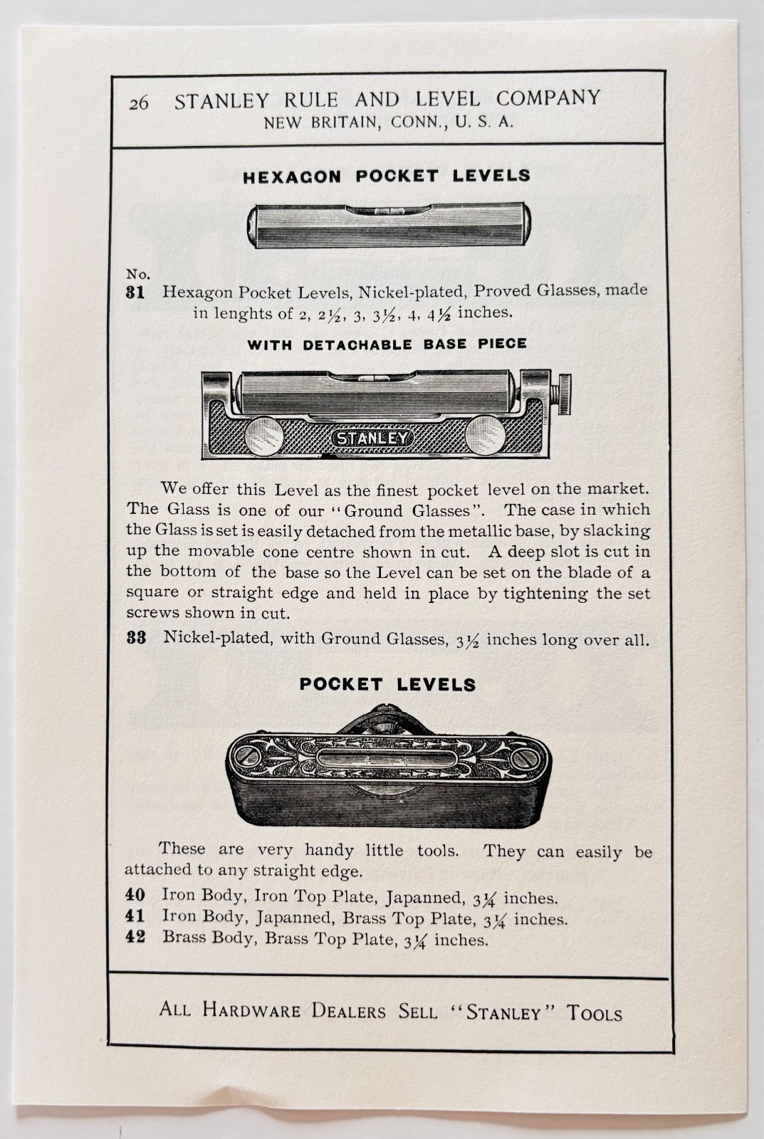 From "Stanley Tools Rule And Level Catalogue" 1900