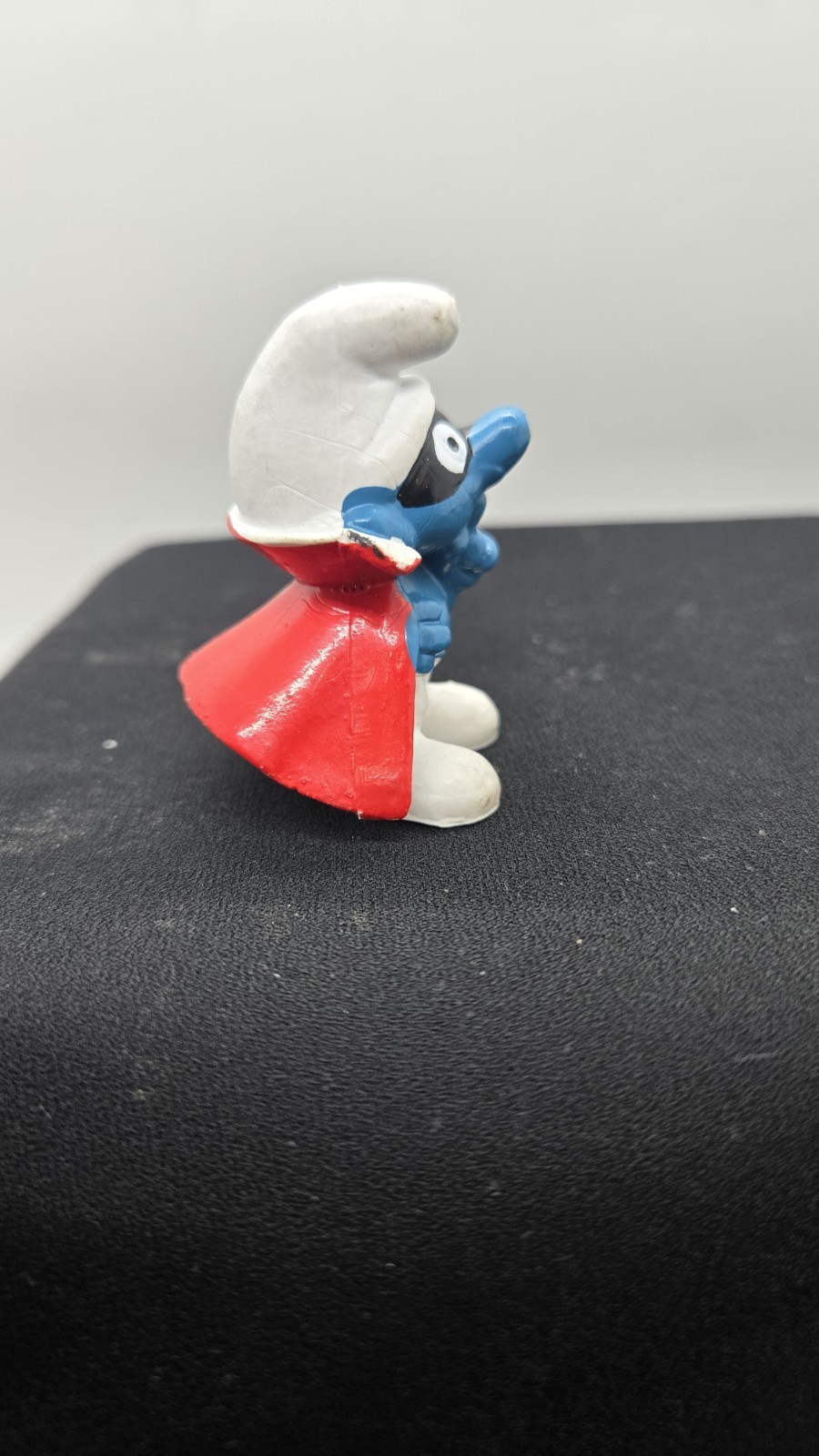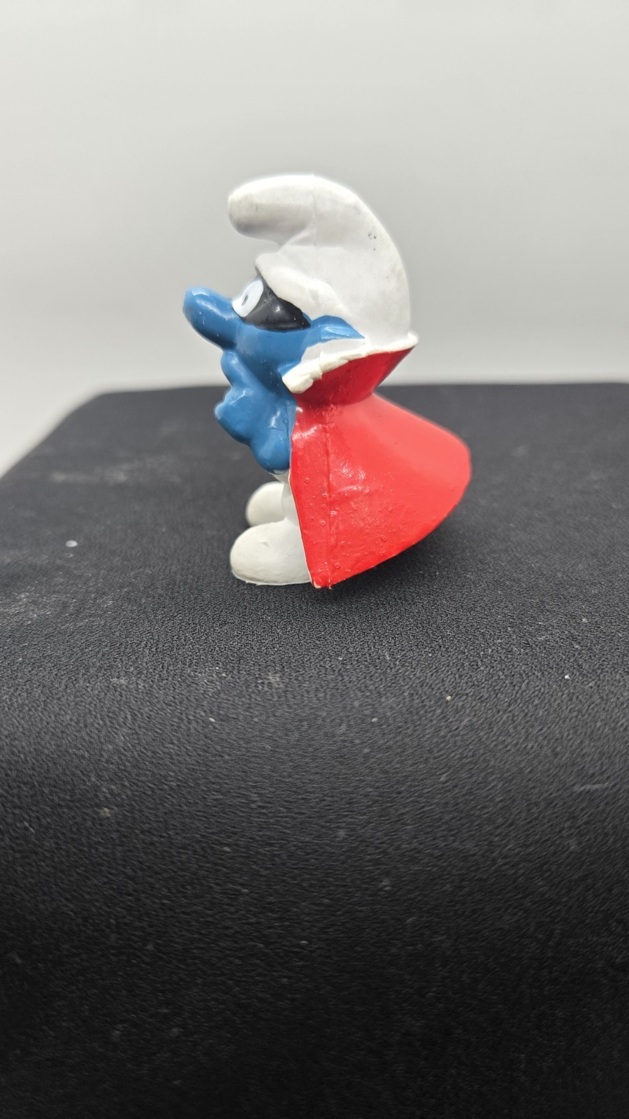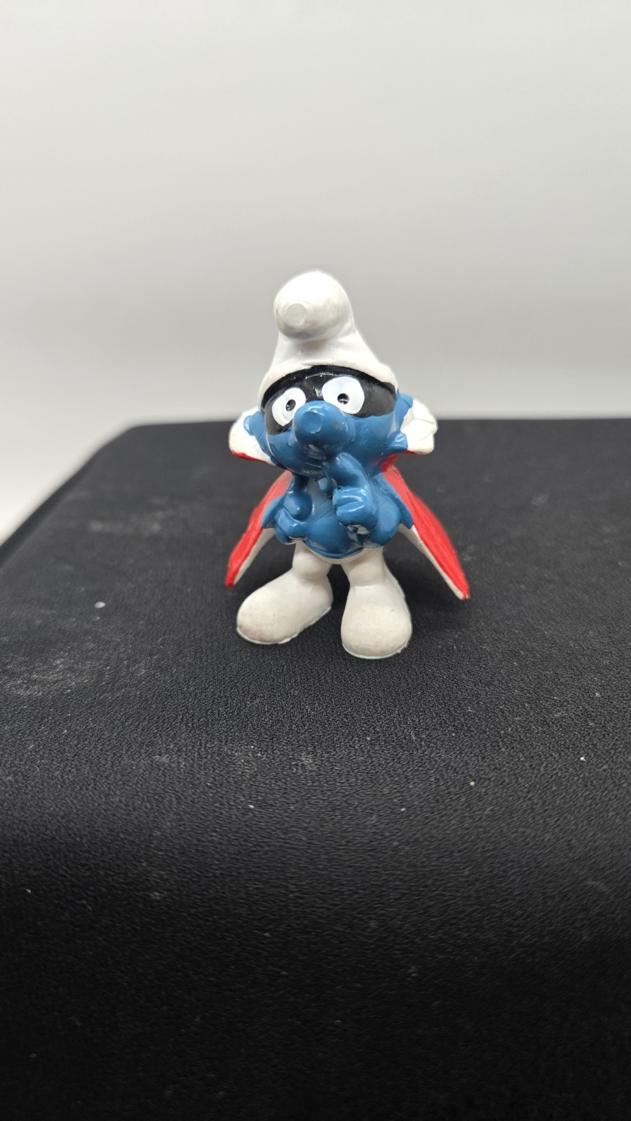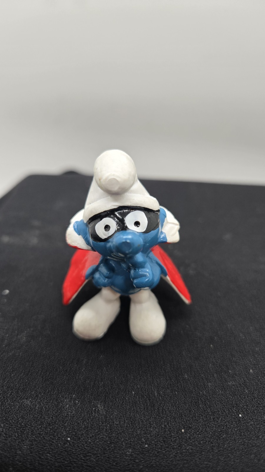 'Spy Smurf' Vintage Smurfs 1966 SCHLEICH PEYO 2" PVC Figure Mask/Cape Honk Kong